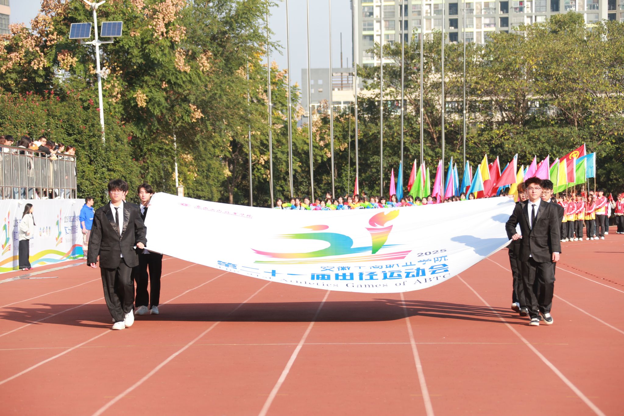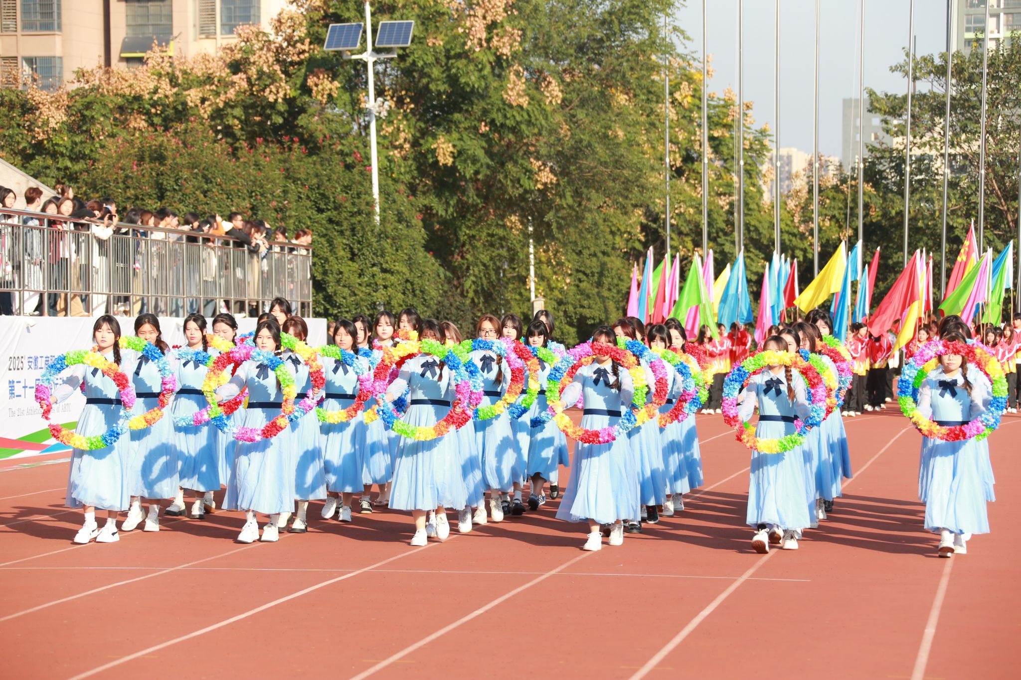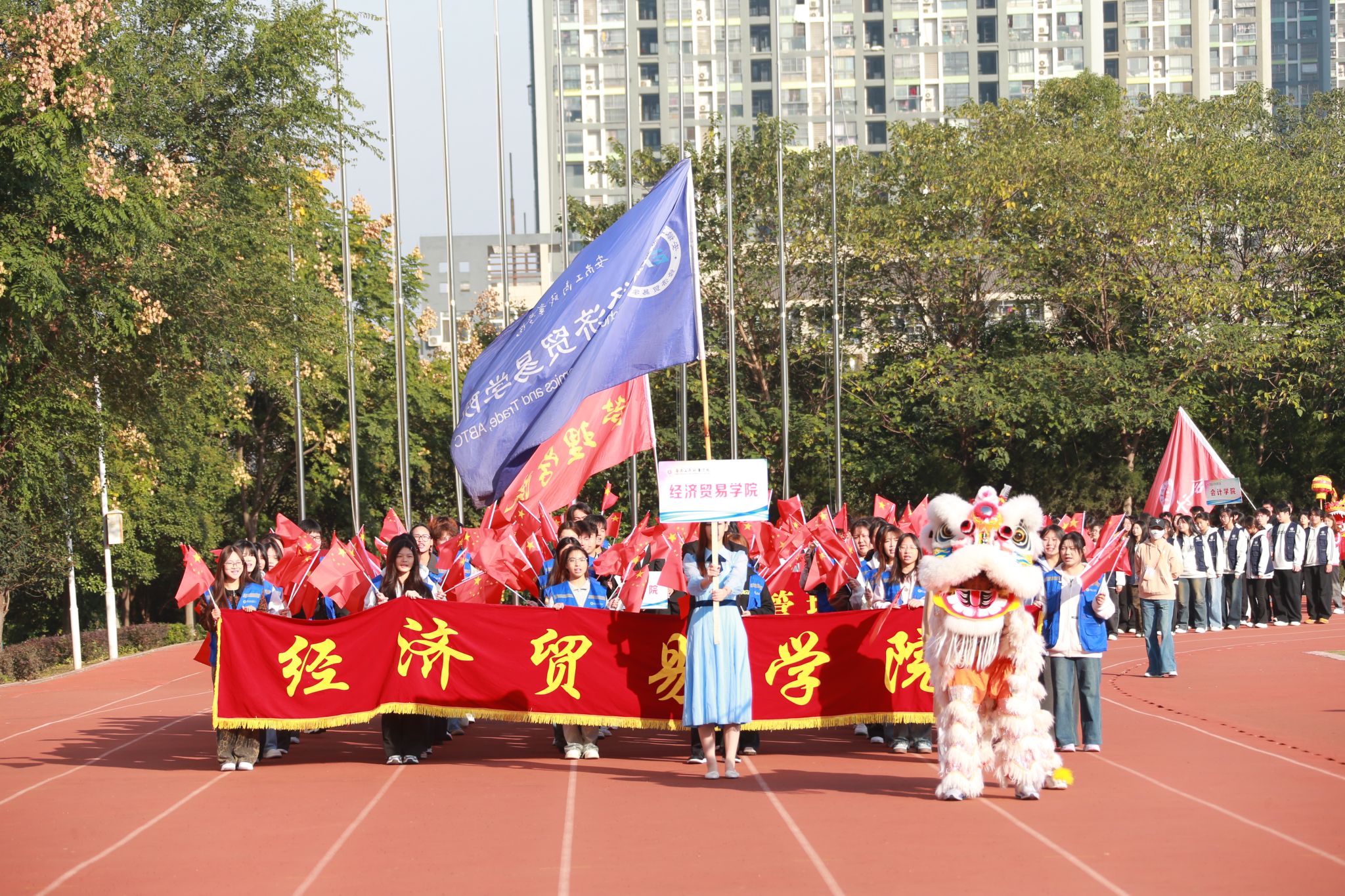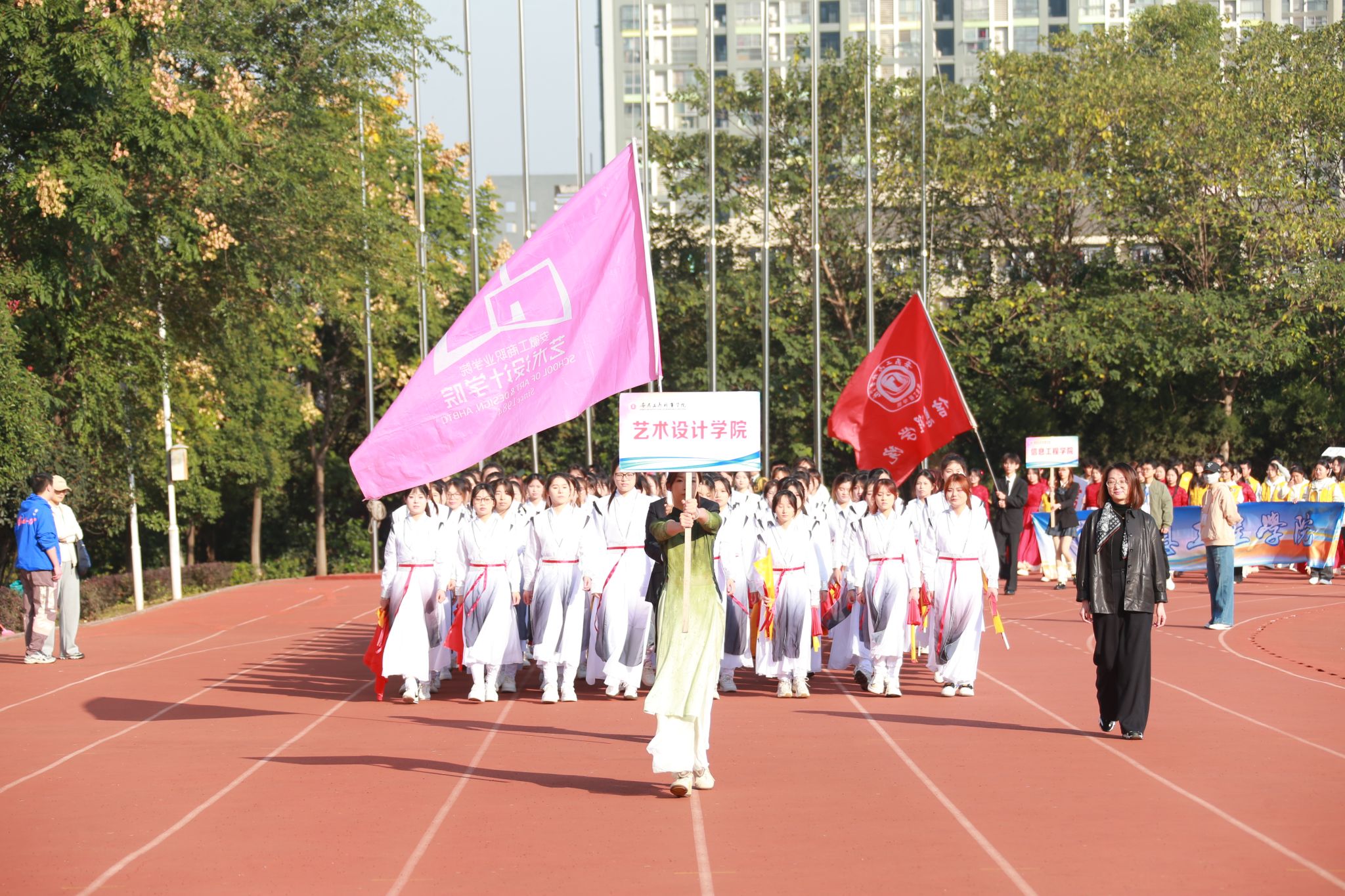 随后的团体操表演将开幕式推向了高潮。旅游健康学院以“青春启航,全力以赴”为主题,用充满力量的动作和昂扬的姿态,展现了学子们奋发向上的精神面貌;信息工程学院“信工聚力·逐梦向未来”,通过富有科技感的队形变换与节奏韵律,描绘出数字时代的青春蓝图;艺术设计学院“此生赴山河”则如同一幅流动的写意画卷,将艺术之美与山河壮阔融于一体,演绎出深沉的家国情怀;智能制造与汽车学院凭借“奔跑的青春”主题,以动感十足的编排和表演,彰显了速度与力量之美。四院联袂,为秋日赛场注入了磅礴的青春活力,看台上掌声雷动,喝彩声此起彼伏。