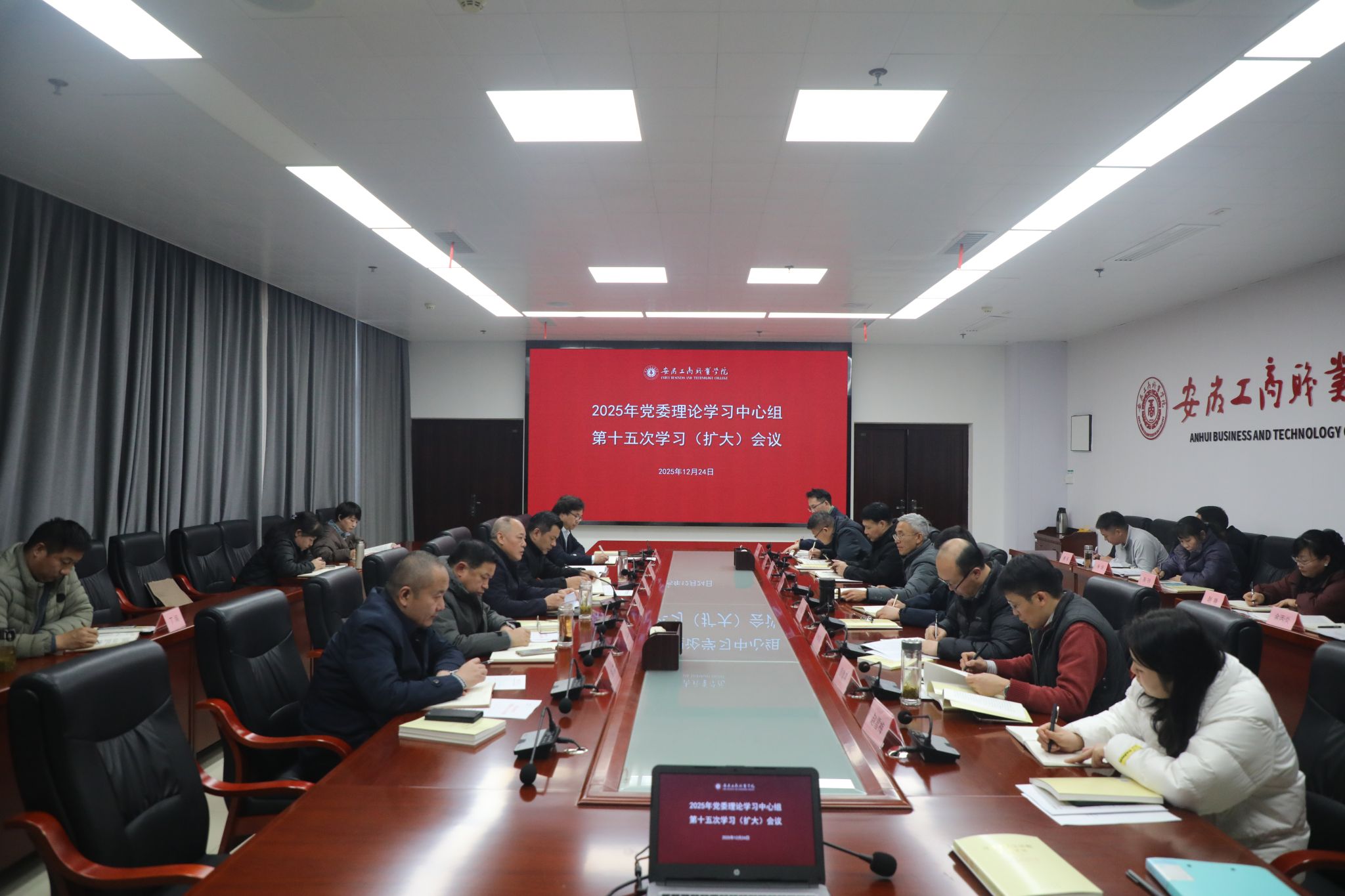 12月24日下午,校党委召开2025年第十五次理论学习中心组学习(扩大)会议,集体学习了习近平总书记在中央经济工作会议上、在中共中央政治局第二十三次集体学习时的重要讲话精神,学习了《习近平法治思想学习纲要(2025年版)》《习近平外交思想学习纲要(2025年版)》相关内容,学习了省委十一届十一次全会精神,传达了中央和省委相关文件精神。党委书记齐建平主持学习并讲话。校党委班子成员参加会议,相关院部处室主要负责人列席会议。