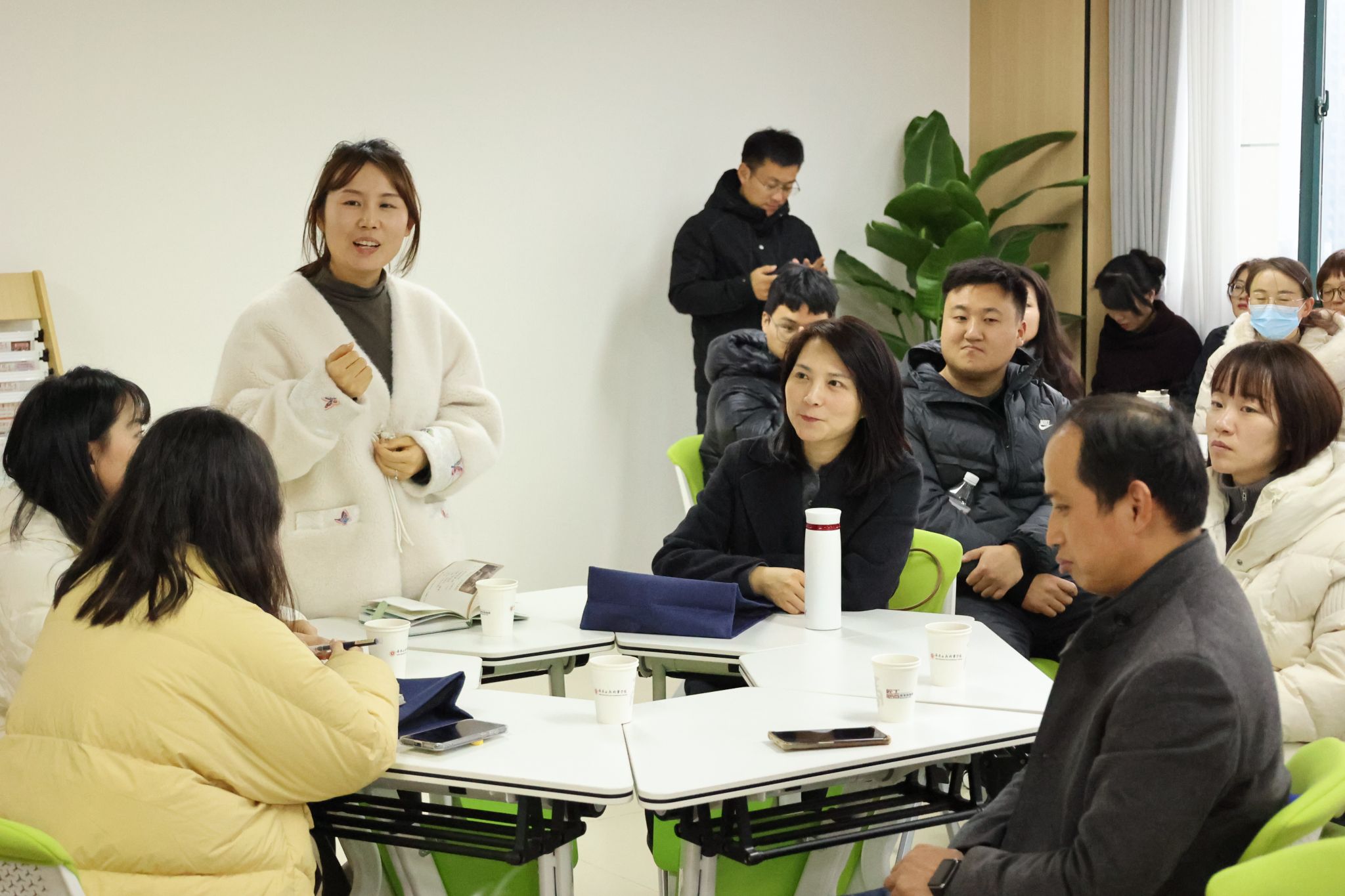 在随后的辅导员沙龙研讨环节中,辅导员代表齐聚学校“匠心工商”辅导员名师工作室,围绕“科研能力提升”“工作室机制建设”以及“学生管理创新”等议题,结合各自工作中的实践与困惑,与主讲专家刘灿展开了对话。与会人员就“如何从日常工作中提炼科研课题”“工作室如何实现可持续运行与跨校联动”“学生职业规划与学业发展的系统性引导路径”等具体问题踊跃提问,刘灿结合自身理论研究与实践经验,逐一进行了深入细致的回应,并提出了若干具有可操作性的建议。该环节强化了培训的互动性与实效性,也进一步激发了辅导员们向研究型、专家型发展的内在动力,充分彰显了跨校交流平台对于推动辅导员队伍专业化建设的现实意义与长远价值。