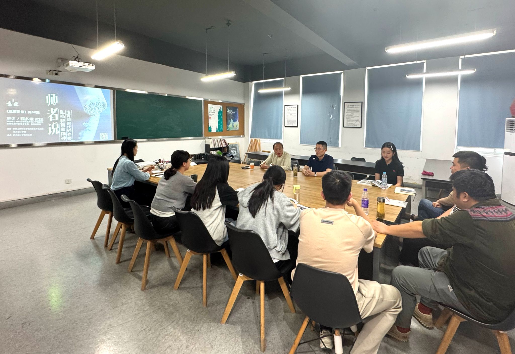 图二:“银龄教师”程多耀为青年教职工讲述学院发展史