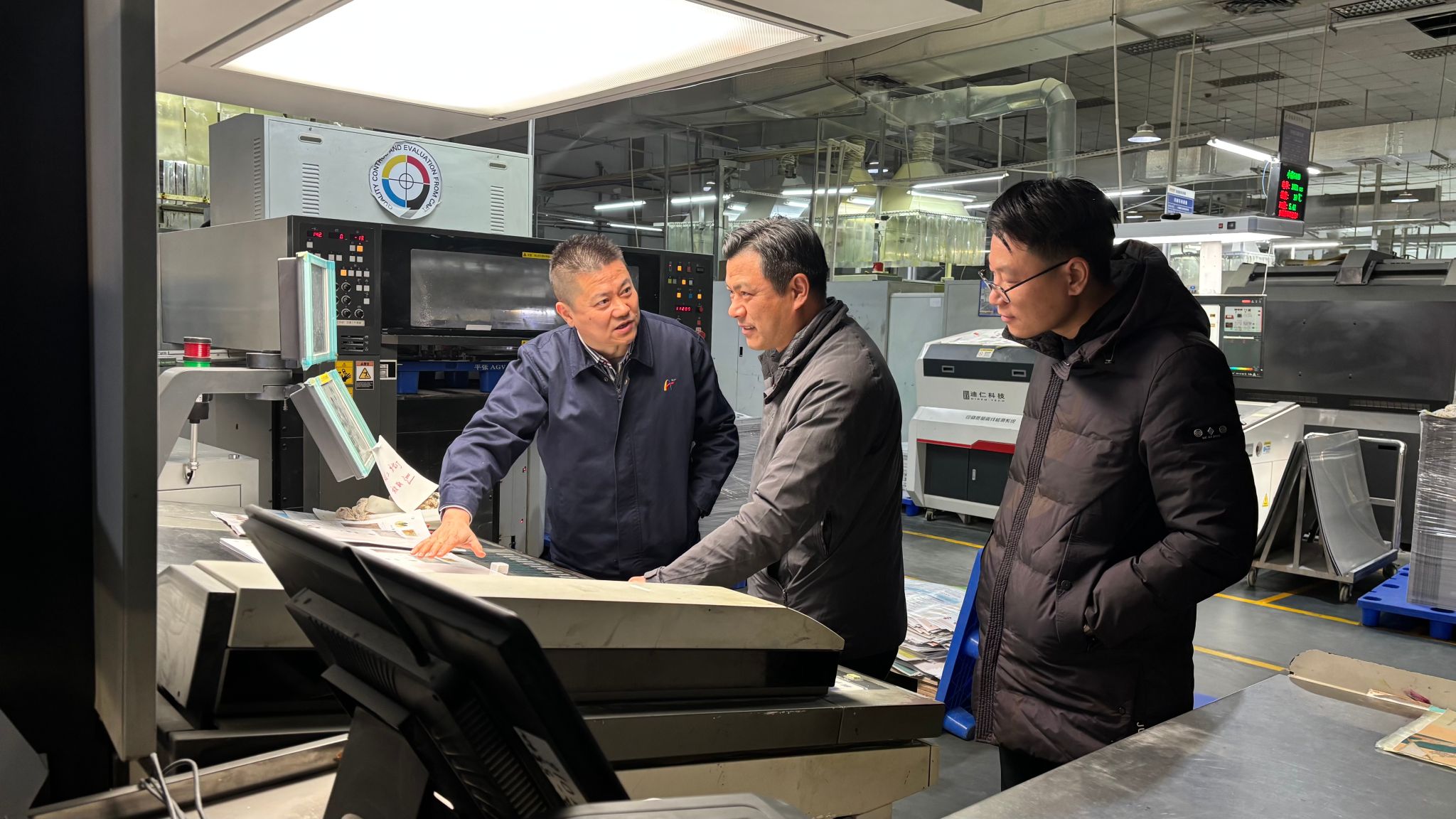 在安徽新华印刷股份有限公司,陈行与董事长姚峰及班子成员深入交流,在开展学生认知实习、企业导师计划、“劳模”“工匠”进校园等方面达成一致意见。陈行对企业的长期支持表示衷心感谢,希望借助企业的行业资源与技术优势,搭建“产学研用一体化”平台,提升学生专业技能。调研团队实地参观了印刷车间、企业历史展馆及企业文化展厅。