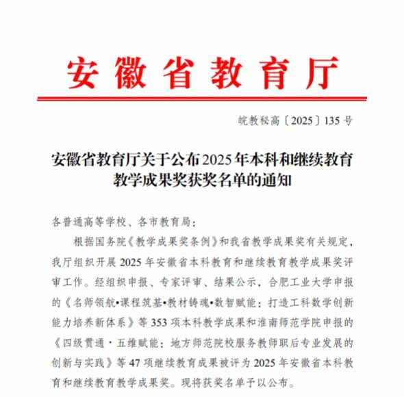 近日,安徽省教育厅正式公布《2025年本科和继续教育教学成果奖获奖名单的通知》,世界第一大赌场,澳门金沙城中心:继续教育成果《多元协同、数智赋能、德技并修:面向新兴产业与乡村振兴的终身学习模式融合创新与实践》荣获二等奖,该成果聚焦终身学习模式的创新,反映了世界第一大赌场,澳门金沙城中心:在相关领域的改革与实践进展。