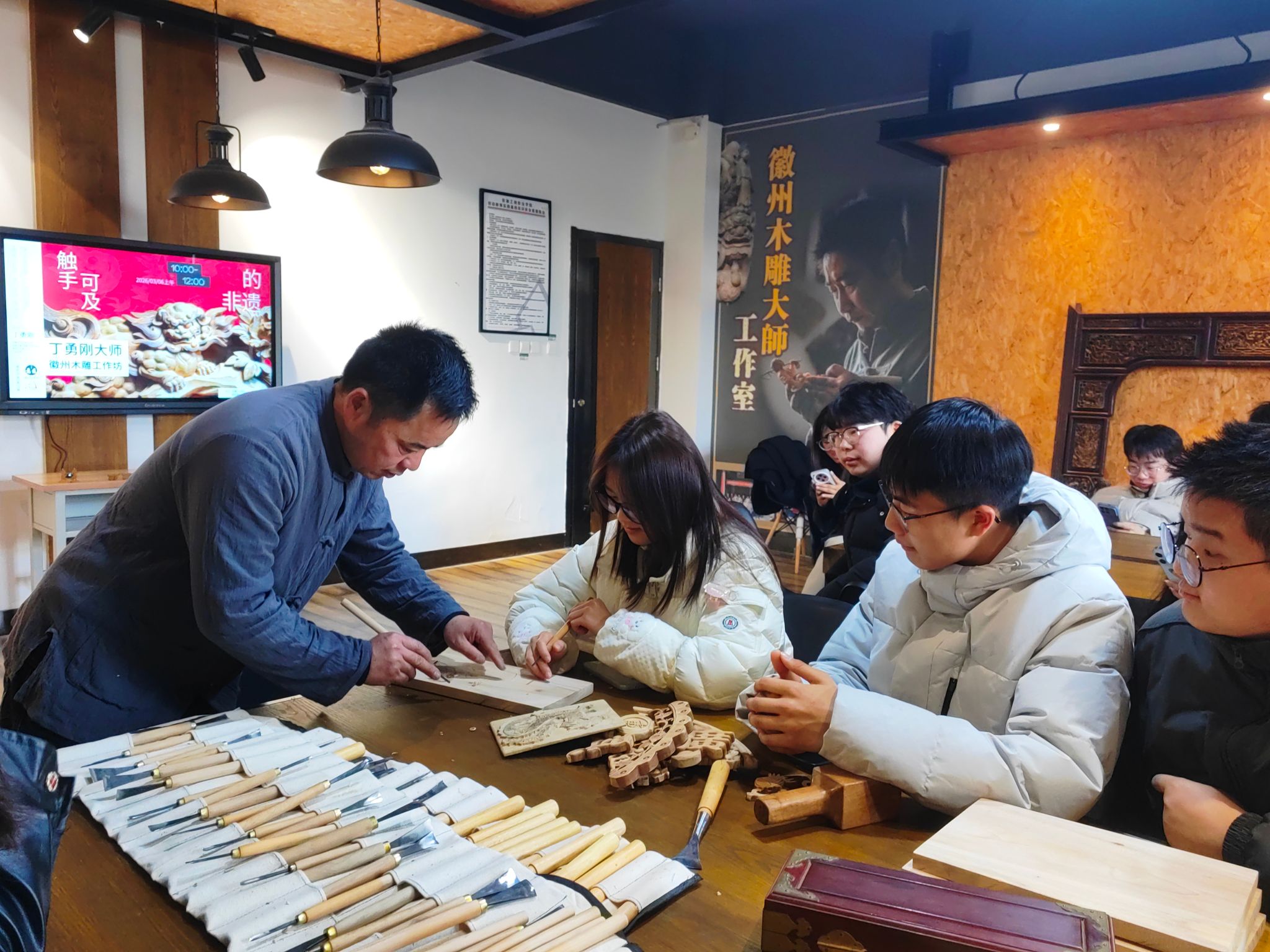 近年来,安徽工商职业学院持续推进“非遗进校园”工作,依托国家级大师工作室、意匠讲堂以及省级中华优秀传统文化传承基地、省级徽派技艺学生劳动教育实践基地等平台,搭建起传统文化与现代教育的融合桥梁。丁勇刚作为泾县“非遗进校园”项目辅导老师,也长期致力于皖南木雕在青少年群体中的传播与推广。此次走进高校,正是他推动非遗“触手可及”的又一次生动实践。