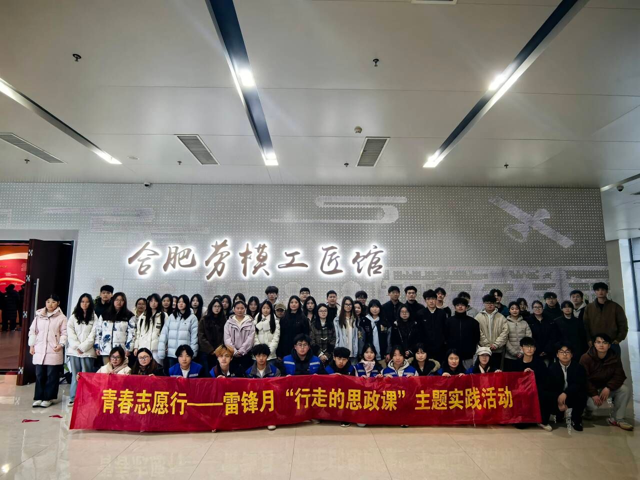 致敬劳模工匠,汲取奋进力量。随后,师生一行来到合肥劳模工匠馆,将雷锋精神的课堂延伸至新中国建设与发展的火热实践中。在专业讲解员的带领下,师生们通过一张张劳模照片、一件件工匠实物、一段段奋斗影像,沉浸式感受了不同时期合肥市各行各业杰出代表爱岗敬业、争创一流、艰苦奋斗、勇于创新的感人事迹。从“做一颗永不生锈的螺丝钉”的雷锋,到千千万万在平凡岗位上创造不凡业绩的劳模工匠,变的是时代背景,不变的是那份对国家、对事业的无限热爱与忠诚。同学们深刻体会到,劳模精神和工匠精神正是雷锋精神在具体工作岗位上的生动实践与时代延伸,是将崇高理想信念转化为具体行动的典范。