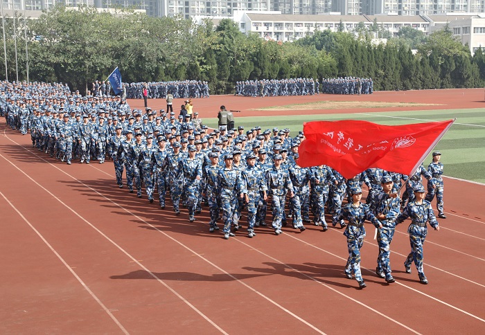 随后,军训汇报表演开始。各方阵将饱满的精神、矫健的步伐、准确的口令、嘹亮的声音展现得淋漓尽致,摆臂抬腿的每一个动作,都映照着训练的日日夜夜,勇往直前的步伐,展现出新同学朝气蓬勃的精神面貌。