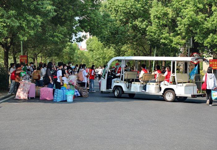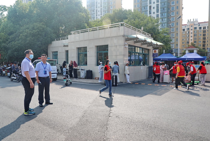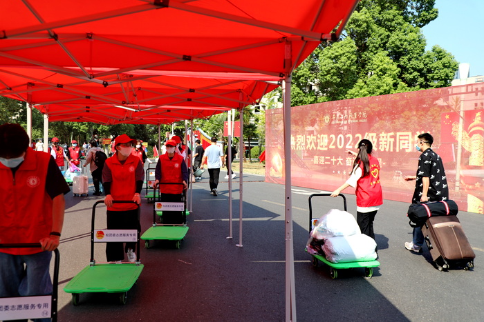 为确保疫情防控下的迎新工作平稳有序开展,今年新同学入校采取分批次、错时错峰报到方式进行。为了保障全体师生安全,学校提前进行了疫情防控应急演练和校园环境消杀,从人员有序进出校园,到行李消杀、行程卡、健康码检查,再到身份确认、测温等候,每个环节严谨有序。全校各工作组和各校迎新工作人员相互配合,通力合作,以满腔的热情、饱满的精神状态,细致周到地服务,有效保障了2022级新同学报到工作的顺利进行。