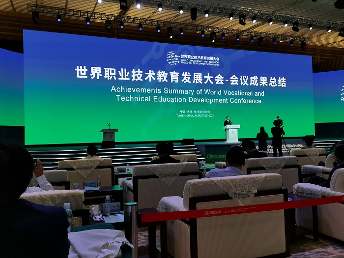 本次大会是经国务院批准,由教育部、中国联合国教科文组织全国委员会和天津市人民政府举办的首次国际性职业教育大会,大会以“后疫情时代职业技术教育发展:新变化、新方式、新技能”为主题,包含开幕式、主论坛、14个平行论坛和闭幕式,来自全球123个国家约700名代表注册参会。此次大会通过线上线下相结合的方式举办主论坛和平行论坛,国内外顶级专家、行业龙头企业汇聚一堂对当前全球关心的热点问题展开交流研讨,为全球职业教育发展搭建起交流互鉴的舞台,线上线下共同唱响2022中国职教最强音。大会还同期举办了首届世界职业院校技能大赛、世界职业教育产教融合博览会,并发布筹建世界职业技术教育发展联盟的倡议,形成“会、盟、赛、展”的职业教育国际交流合作崭新平台和范式。