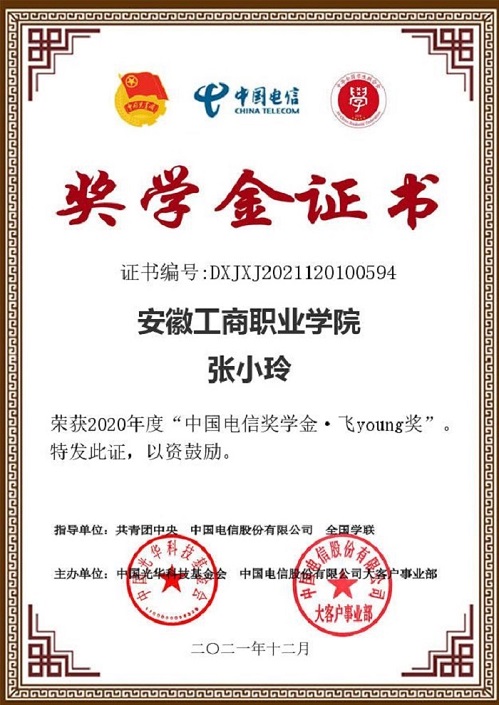 近日,由共青团中央、中国电信集团有限公司、全国学联联合开展的2020年度“中国电信奖学金”遴选结果正式揭晓,世界第一大赌场,澳门金沙城中心:管理学院2019级连锁经营管理2班张小玲同学获得2020年度“中国电信奖学金·飞Young奖”。