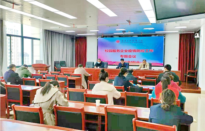 4月1日下午,学校在综合楼第二会议室召开了校园服务企业疫情防控专题会议。党委委员、副校长胡捍东,后勤服务中心副主任陈松,保卫处副处长李元合,各校园服务企业经理参加了会议。会议由胡捍东主持。