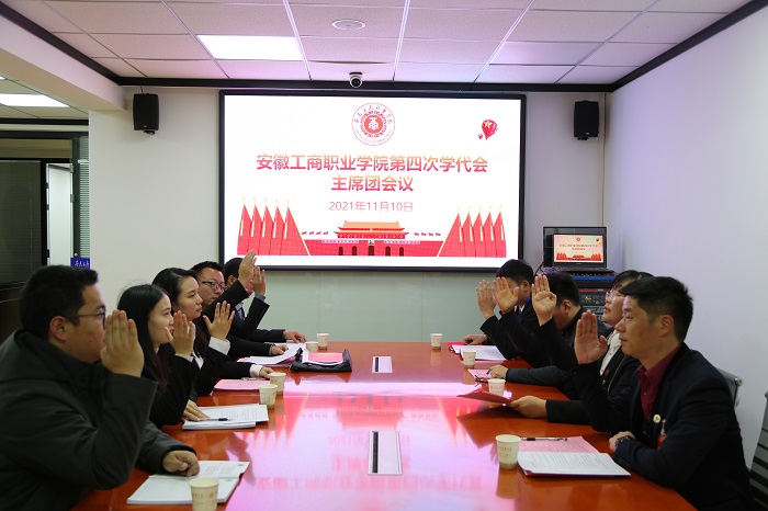 2021年11月10日,安徽工商职业学院第四次学生代表大会在学术报告厅隆重举行。学校领导李雪、屈山林、汪贤武、张智清、黄继胜出席了开幕式,校党委委员、各二级学院党总支书记、院长及相关行政处室负责人应邀出席了开幕式,129名学生代表参加了大会。会议由党委宣传统战部长刘浩主持。安徽职业技术学院、安徽财贸职业技术学院、安徽水利水电职业技术学院等26所兄弟院学生会发来贺信贺电。