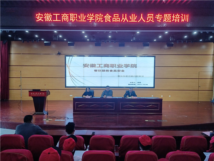 为加强学校食品安全监管工作,提升食品从业人员的风险防范意识和规范操作意识,增强从业人员的法律观念和相关知识技能,提高学校的食品安全监管能力和水平。10月8日下午,学校特邀请安徽众安第三方食品安全监管服务有限公司总经理吴燕为学校食堂从业人员进行食品安全知识专项培训。培训在双凤校区学术报告厅举行,校党委委员、副书记屈山林、后勤服务中心相关工作人员、食堂食品经营管理者、食品安全监督管理员及相关从业人员95人参与此次培训,培训会由后勤服务中心副主任陈松主持。