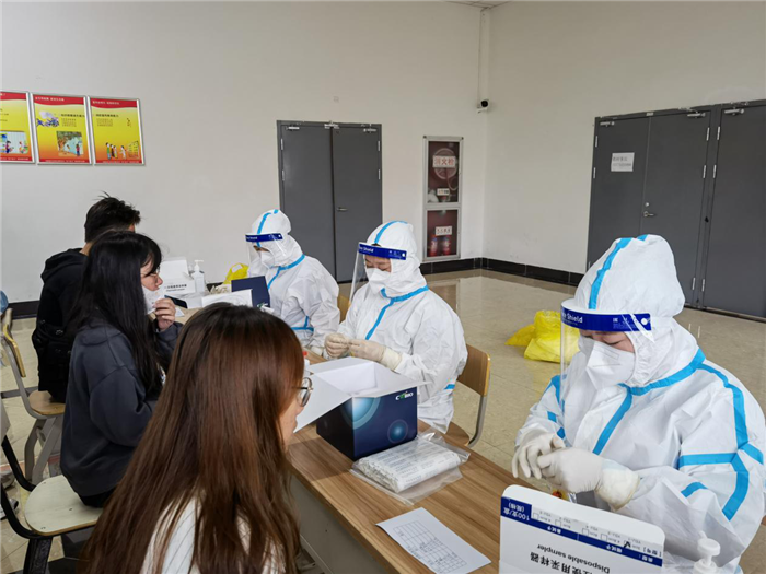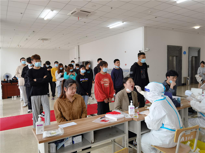 国庆期间,新疆等局部地区出现本土疫情,为全面做好新冠肺炎疫情防控工作,防范疫情输入扩散风险,筑好校园安全防线,10月6日后勤服务中心校医院紧急联系双凤医院,组织安排医护人员到校为出省返校的师生们集中进行核酸检测。