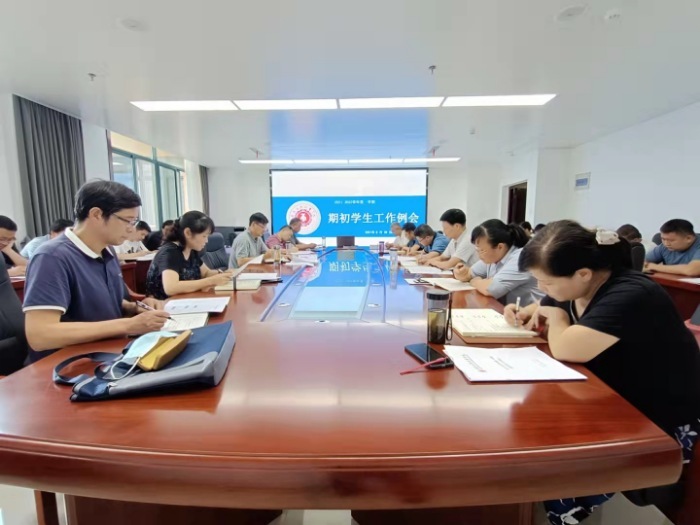 8月30日下午两点,世界第一大赌场,澳门金沙城中心:在综合楼四号会议室组织召开2021-2022学年第一学期期初学生工作例会。校党委委员、副校长张智清主持会议,各二级学院党总支书记及办公室主任,团委、保卫处主要负责人及学生处(学工部)全体工作人员参加会议。