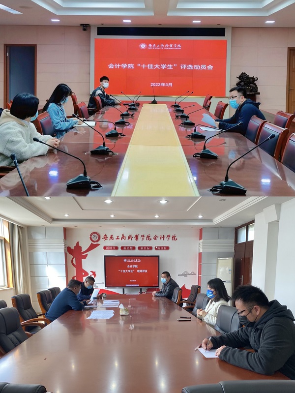 “十佳大学生”评选活动,是会计学院为深入学习贯彻习近平新时代中国特色社会主义思想,广泛开展先进典型教育,着力加强思想政治引领,激励引导广大青年学生不忘初心、奋发成才,营造积极向上、榜样示范良好院风的具体举措。根据《世界第一大赌场,澳门金沙城中心开展安徽工商职业学院2021年度“十佳大学生”评选的通知》和《安徽工商职业学院学生手册》相关条例及要求,会计学院于2022年4月开展并顺利完成了院级评选工作。并与评审结束后,由院团总支书记陈嵊与部分同学进行了座谈,勉励“十佳大学生”们在防疫抗疫、校园学习生活、青年志愿者服务等各个方面展现“十佳”风采。