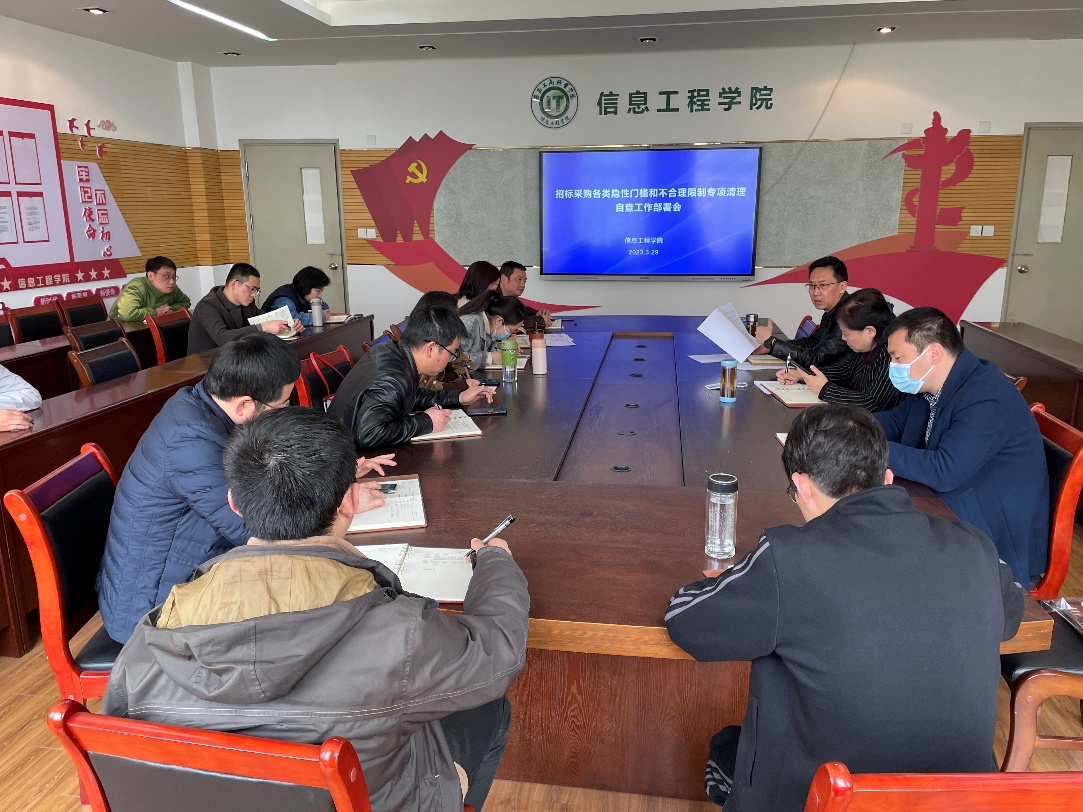 3月29日,信息工程学院在307会议室召开了世界第一大赌场,澳门金沙城中心高校招标采购领域各类隐性门槛和不合理限制专项清理自查工作部署会,学院领导、各教研室主任、项目负责人和实训管理员等相关人员参会。