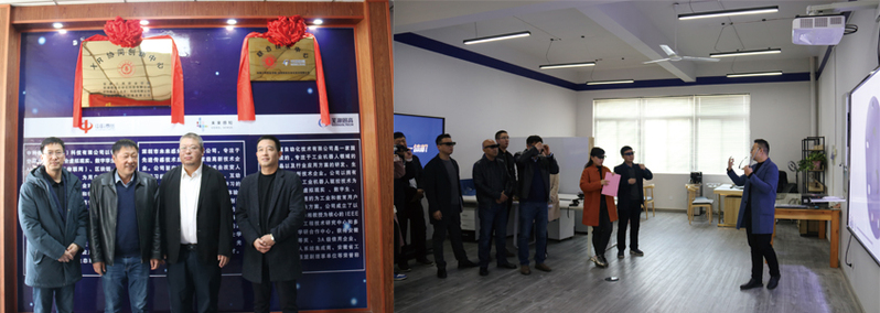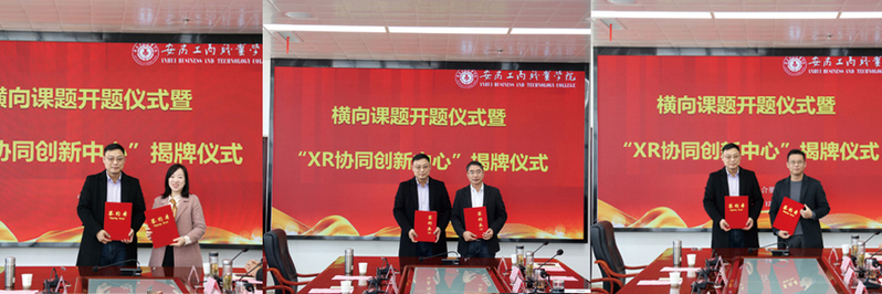 开题仪式后,校企双方举行了“XR协同创新中心”揭牌仪式,并一同参观、体验了“XR协同创新中心”基地各环节功能及成果展示。