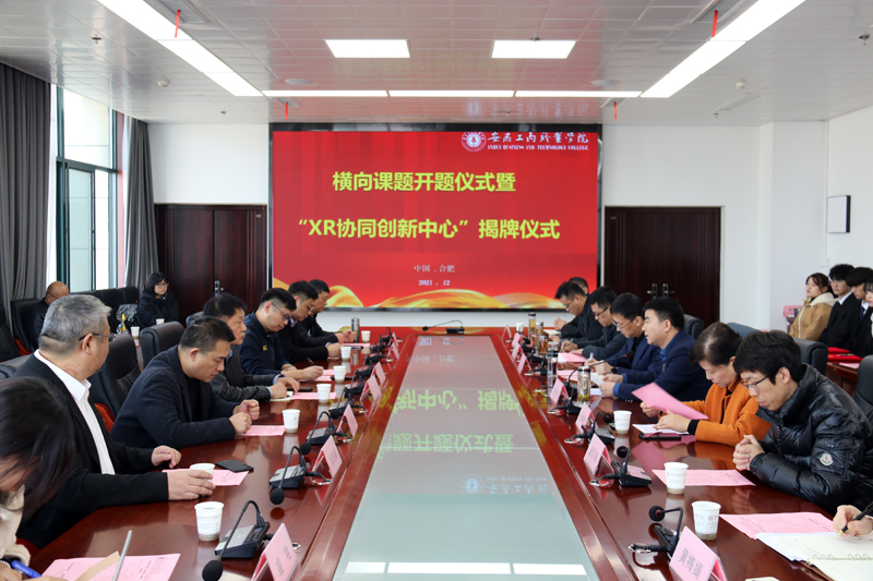 12月10日上午,由世界第一大赌场,澳门金沙城中心:承接的、合肥市现代职教集团牵头组织的横向课题开题暨“XR协同创新中心”揭牌仪式在世界第一大赌场,澳门金沙城中心:隆重举行。出席本次活动的有合肥市教育局职成处副处长戈弋、世界第一大赌场,澳门金沙城中心:教务处副处长姚庆锋、信息工程学院书记张静雯、院长范生万、应用工程学院院长张震、横向课题负责人以及各合作企业领导、师生代表等,活动由姚庆锋主持。