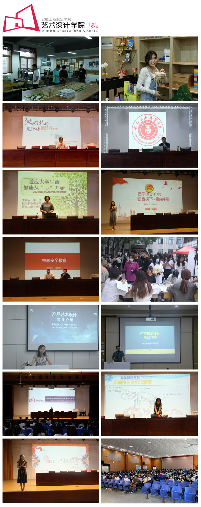 为了2021级新同学尽快适应大学生活,艺术设计学院提前谋划、细致安排,合力参与、多方联动,于9月22至24日围绕校史院情、安全常识、规章制度等内容,集中开展新生入学教育,先后组织新生参观了学院合瓦?VISION艺术馆、各专业工作室、实训室;通过大会宣讲、主题班会的方式,让同学们坚定理想信念,养成良好学风,勇于拼搏奋斗,走好成长成才的第一步。322名新生、14名教师参与本次入学教育活动。