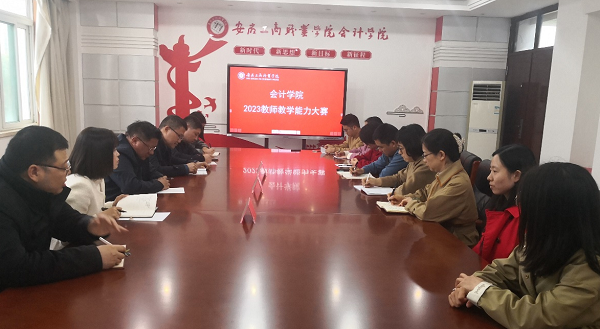4月23日中午12点,会计学院在明德楼二楼教研活动中心举办了2023年教师教学能力大赛,由会计学院院长高克智、会计学院党总支副书记杨锐、教务科长费玄淑担任评委。