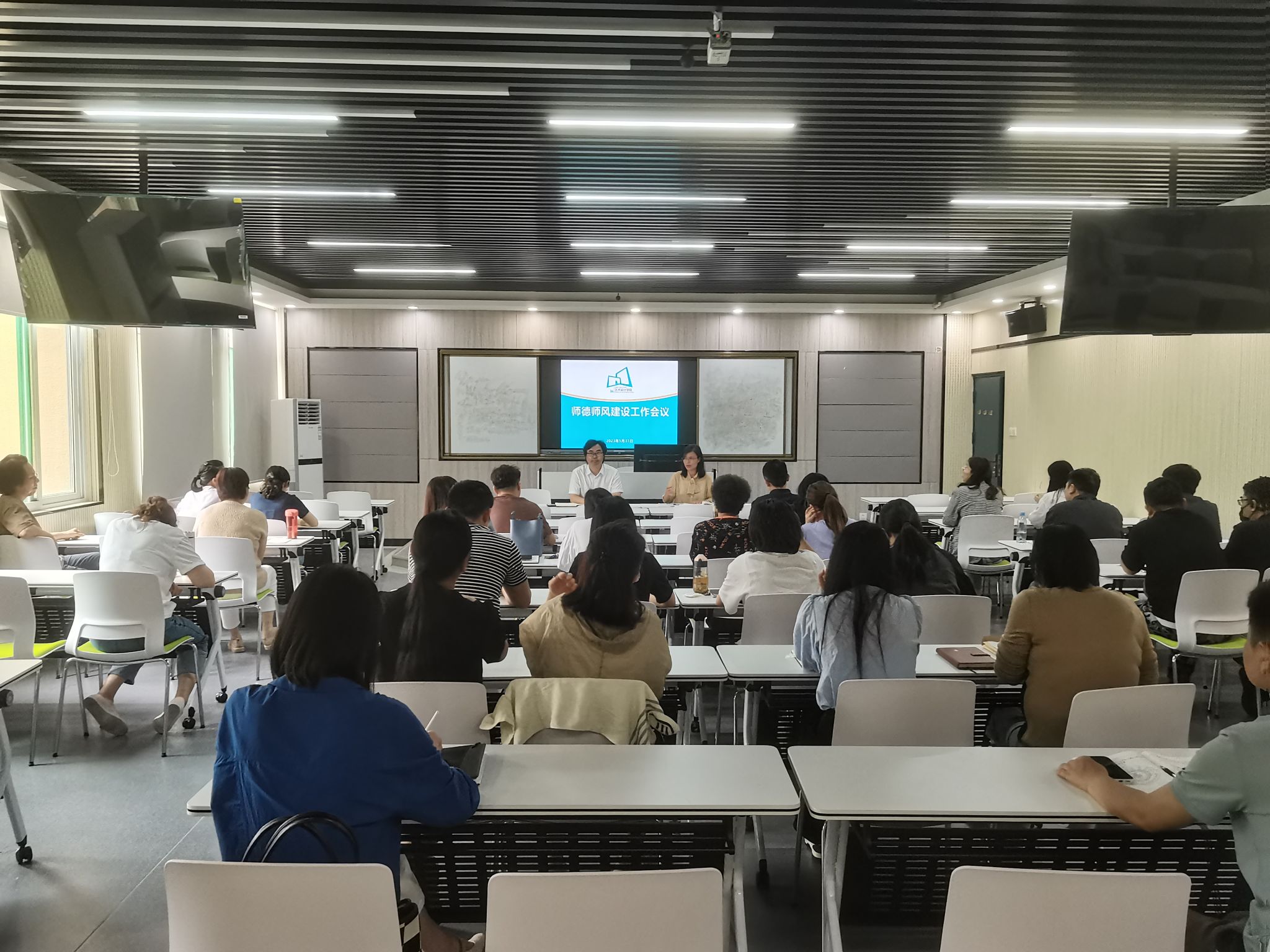 为贯彻落实教育部、安徽省和学校世界第一大赌场,澳门金沙城中心师德师风建设部署要求,坚持把师德师风作为评价教师队伍素质的第一标准,教育引导全体教职工恪守职业“底线”,严守行为“红线”,努力成为“四有”好老师,确保育人环境风清气正、立德树人成效显著,5月31日下午,艺术设计学院在致知楼二楼智慧教室召开师德师风建设工作会议,动员部署专项排查治理工作。校党委委员、党委宣传统战部部长、艺术设计学院党总支书记孔成,艺术设计学院院长魏芬等全体教职工参加会议。