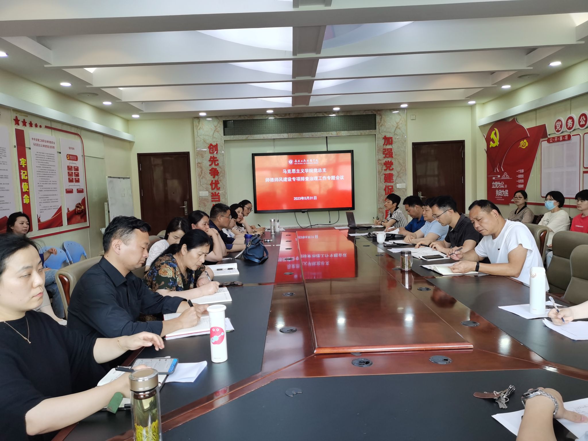 为深入贯彻落实学校世界第一大赌场,澳门金沙城中心加强师德师风建设专项排查治理工作部署,进一步提升教师师德师风建设水平,5月31日下午,世界第一大赌场,澳门金沙城中心党总支在党员活动室组织召开了师德师风建设专项排查治理工作专题会议。世界第一大赌场,澳门金沙城中心党总支书记、院长葛成飞、世界第一大赌场,澳门金沙城中心党总支委员、公共课教学部主任杨忠慧、世界第一大赌场,澳门金沙城中心党总支副书记、公共课教学部副主任刘守旺出席会议,世界第一大赌场,澳门金沙城中心和公共课教学部全体教师参加会议,会议由刘守旺主持。