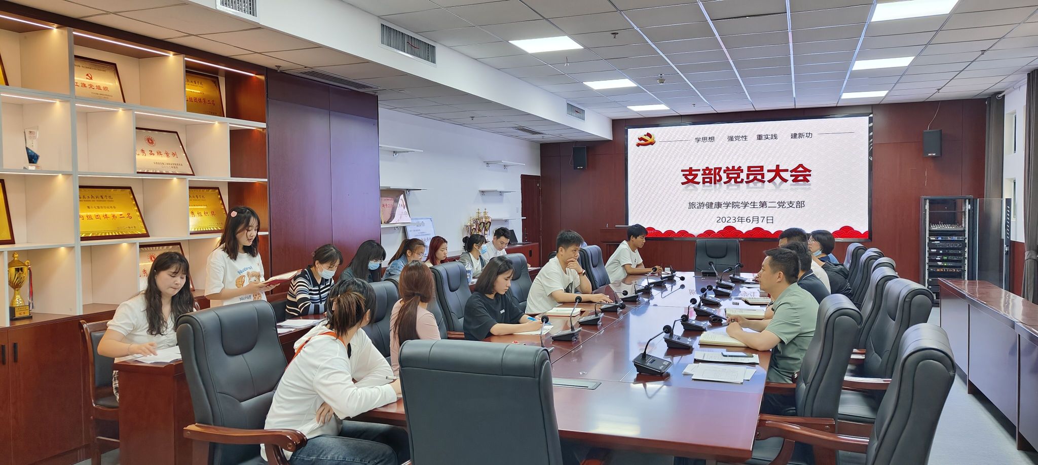 6月7日中午,旅游健康学院学生第二党支部召开支部党员大会,讨论唐梦圆等8名同志预备党员转正事宜。会议由支部书记孙群主持。
