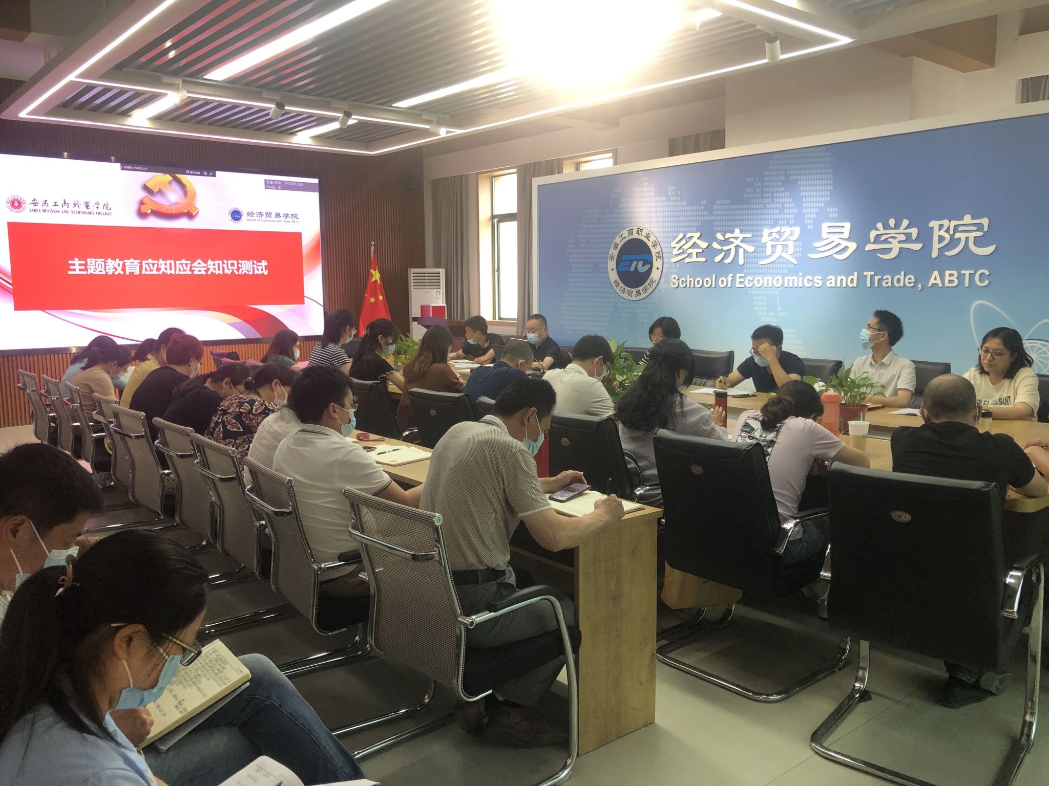 会上,全体教职员工进行了主题教育应知应会知识测试。