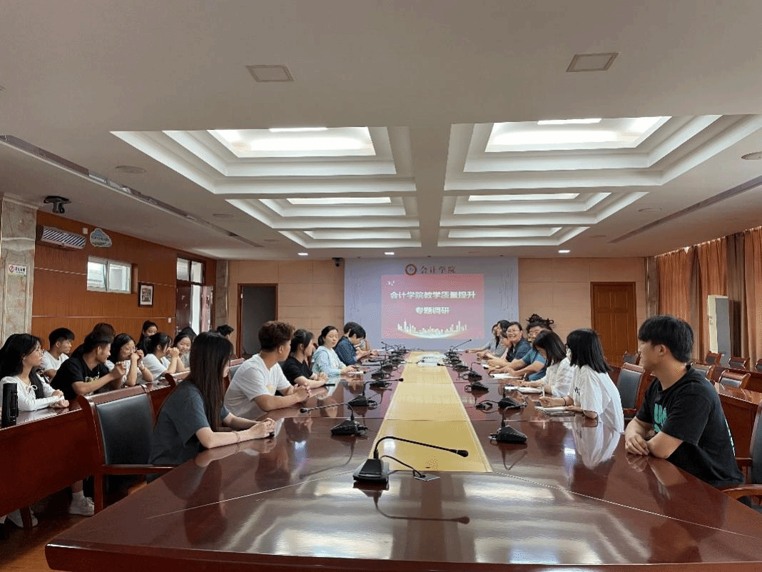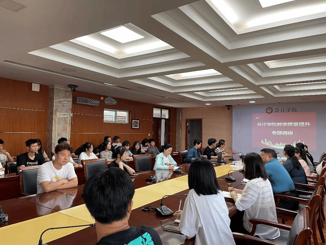 会上,赵艳首先强调此次教学质量提升调研是我院深入开展学习贯彻习近平新时代中国特色社会主义思想主题教育的重要内容,是总结教学工作中的经验和不足推动教学质量不断提升的有效途径。高克智提出本次调研是为了听取同学们对课程设置、教学方法、教学管理与服务等各方面的意见和建议,希望了解教师的教学情况和学生的学习情况,进一步增强我院教学管理服务工作的针对性和实效性,提高教学管理服务水平和提升教学质量,为学院营造良好的学习氛围,使学习更上一个台阶,为今后的教学改革提供有力的依据,同时也助力会计学院高质量发展。