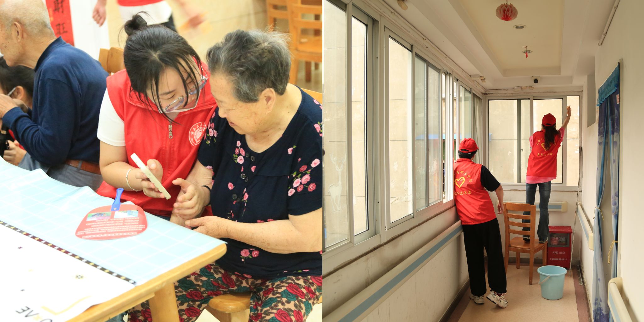 活动现场,党员志愿者们分工明确,有的志愿者与老人们促膝围坐,面对面地亲切交谈,认真倾听老人们在敬老院中的生活状况,有的给老人剪指甲、修眉,有的给老人们整理内务、打扫卫生等。随后党员志愿者们陪同老人在院子里学习手势舞。和着音乐的节拍,老人们兴致盎然,大家用朴实而真诚的行动表达着对老人们的关爱,平日里清静的敬老院一下子热闹起来,院里一片欢声笑语,暖意融融。
