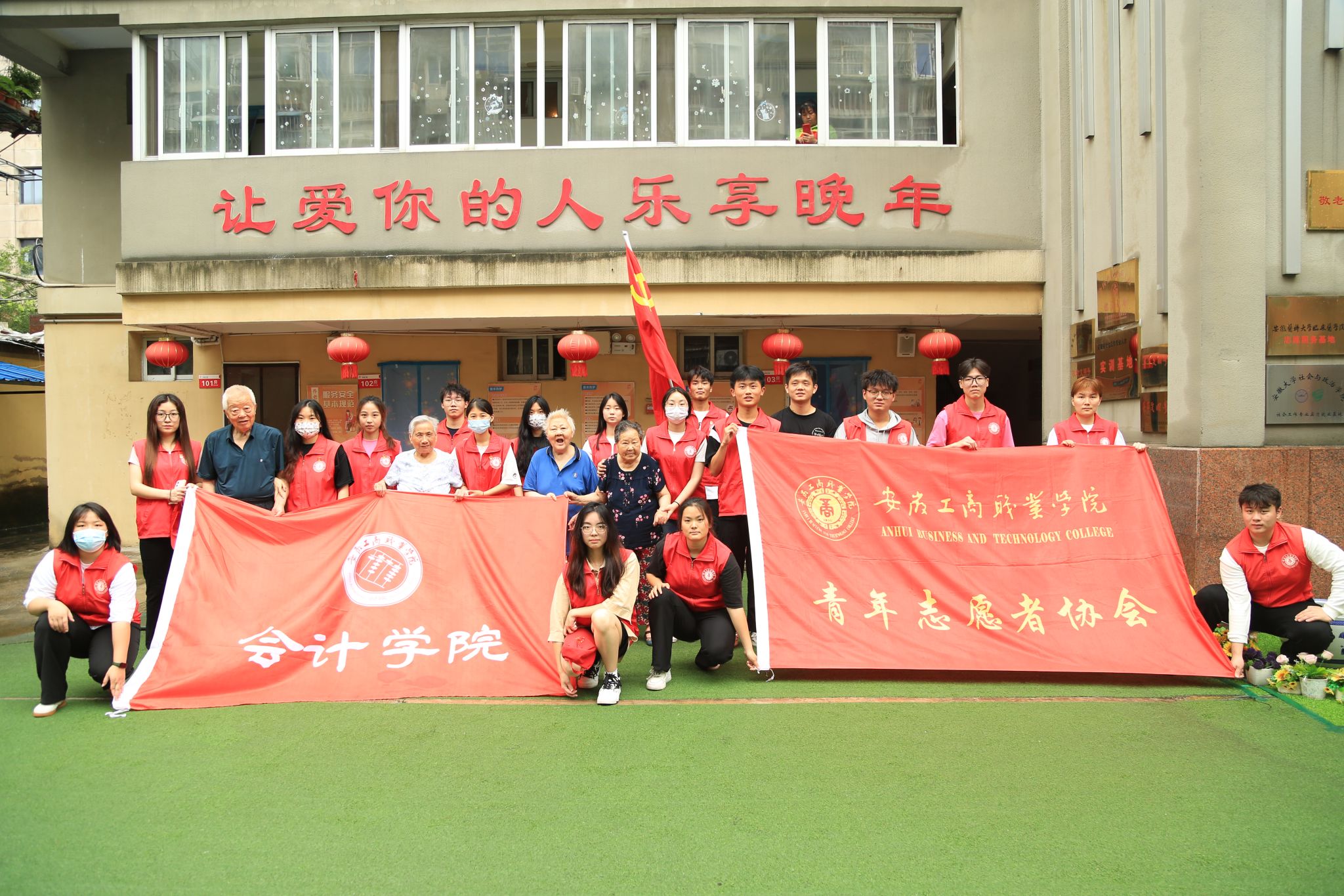 为深入开展学习贯彻习近平新时代中国特色社会主义思想主题教育,进一步弘扬“奉献、友爱、互助、进步”的志愿精神,加强学生党员思想道德教育建设。2023年6月18日,会计学院学生党支部组织学生党员联合校青年志愿者协会,在合肥庐阳乐年长者之家开展“担当社会责任 以“红心”暖人心”敬老院献爱心活动。