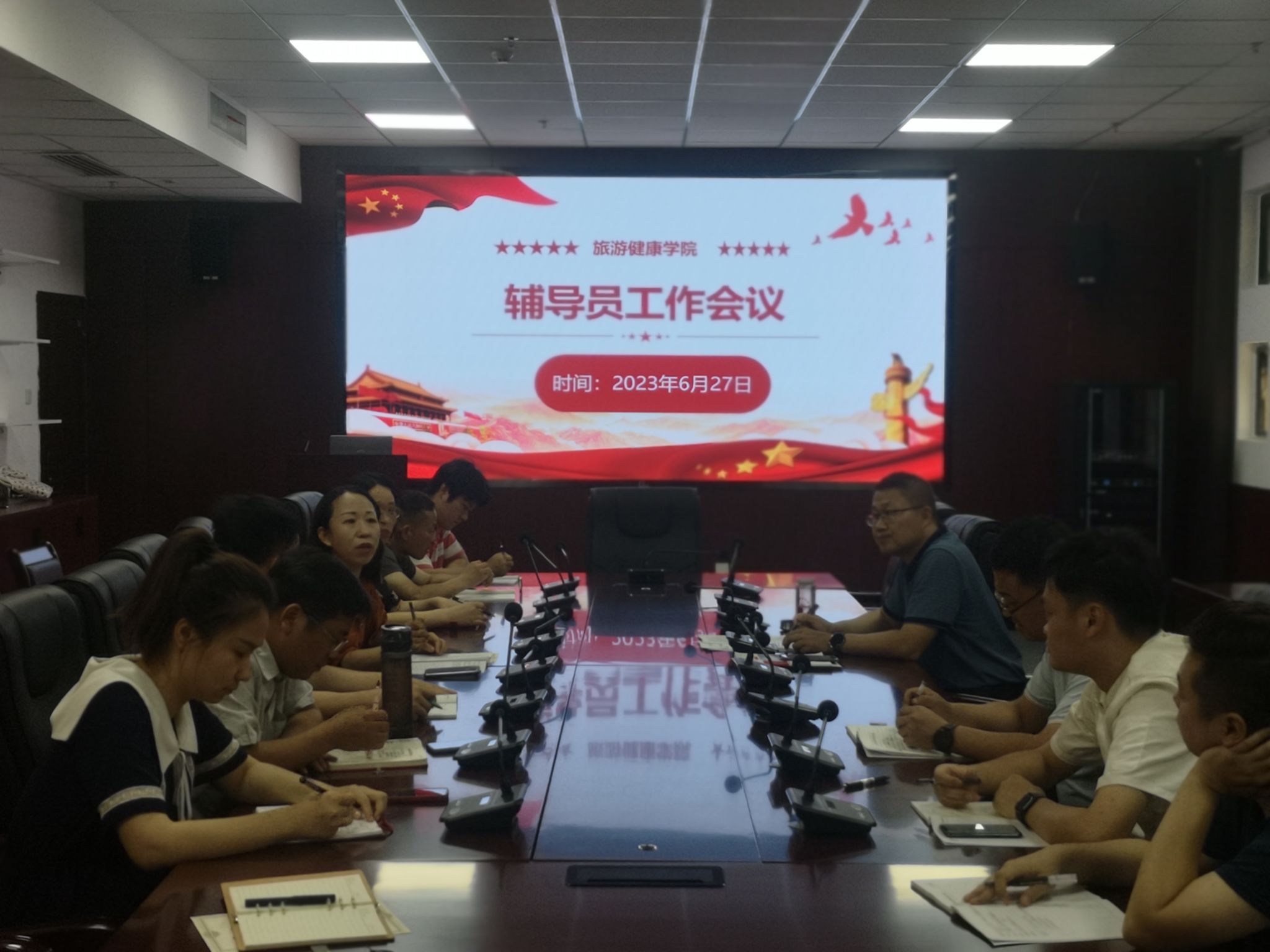 6月27日中午,旅游健康学院在学院会议室召开期末辅导员工作会议。教务科科长李晓维和全体辅导员参加会议。会议由学院党总支书记杨锐主持。