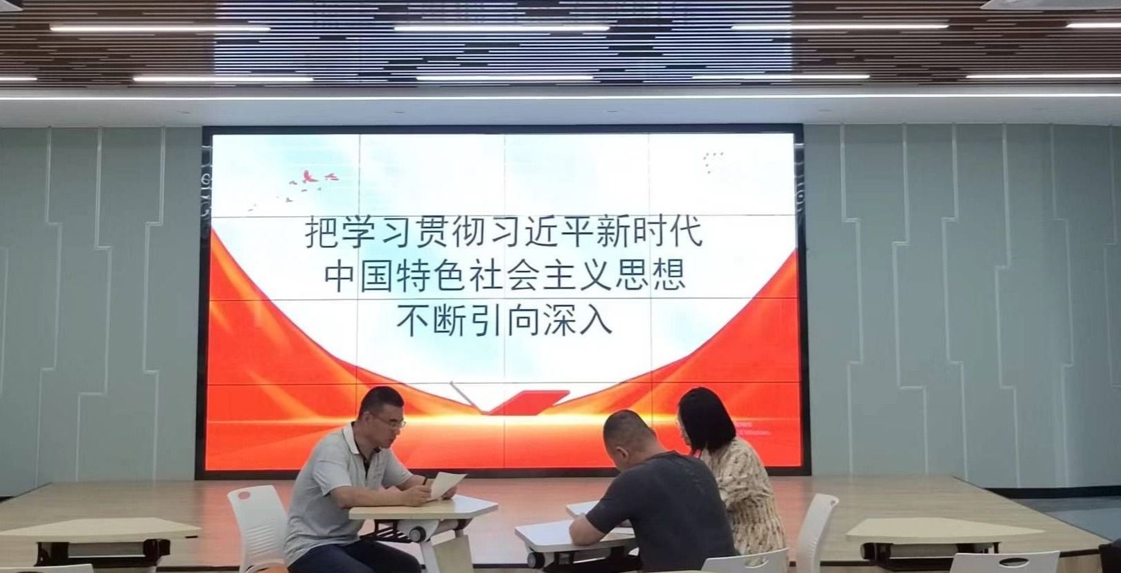 吴子钟从“世情”“国情”“党情”三个方面介绍了开展主题教育的时代背景,分析了开展主题教育的目的和意义,学习了习近平新时代中国特色社会主义思想的科学体系。随后,支部党员共同学习了《习近平新时代中国特色社会主义思想专题摘编》中第六章“实施科教兴国战略,强化现代化建设人才支撑”等内容。
