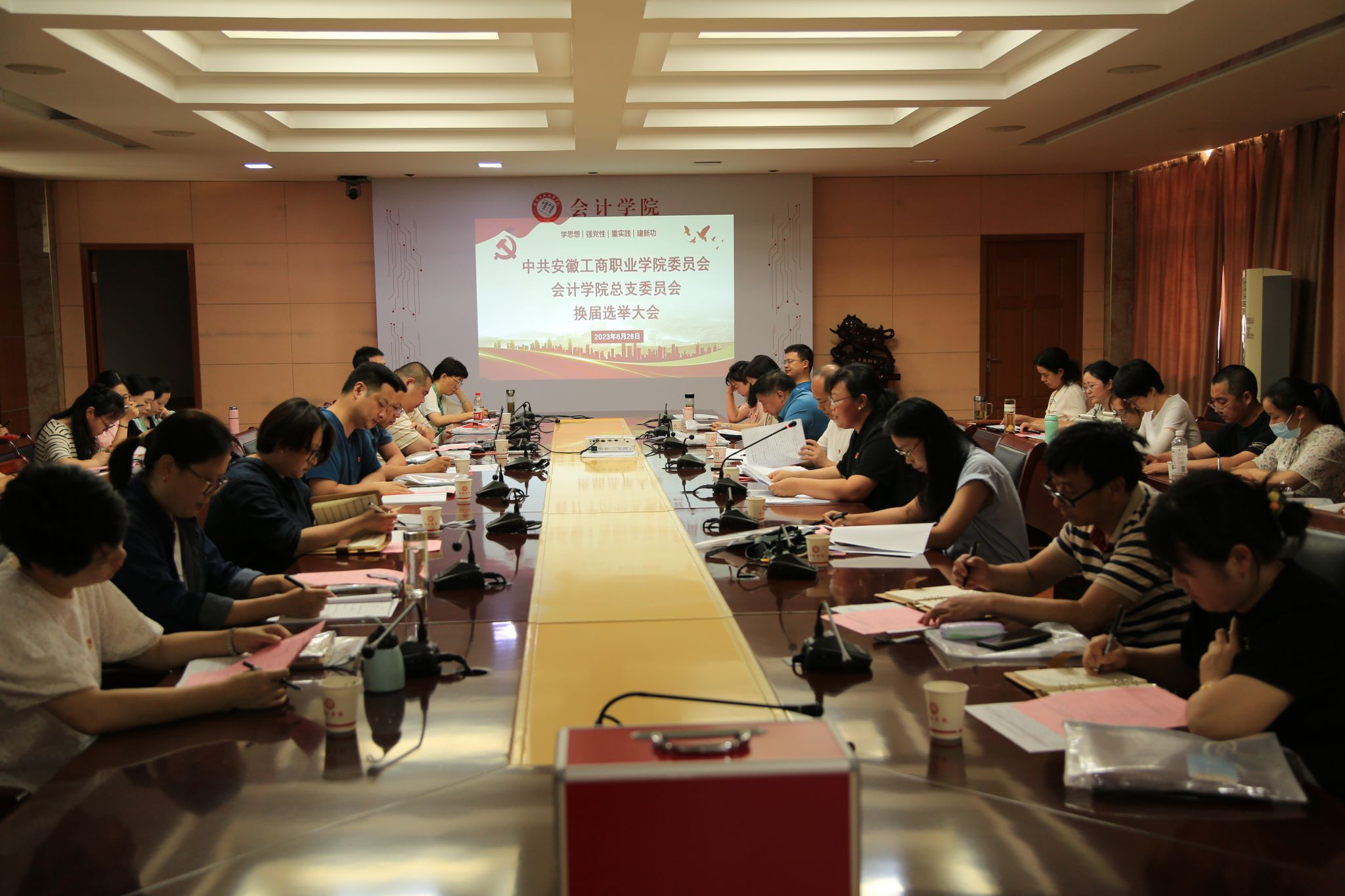 至此,安徽工商职业学院会计学院党总支换届选举工作圆满完成。大会坚持以习近平新时代中国特色社会主义思想和党的二十大精神为指导,落实全面从严治党方针,坚持民主集中制原则,进一步优化基层党组织领导班子结构,推进党的基层组织建设全面进步全面过硬,为推进学院高质量发展提供了坚强的政治和组织保证。