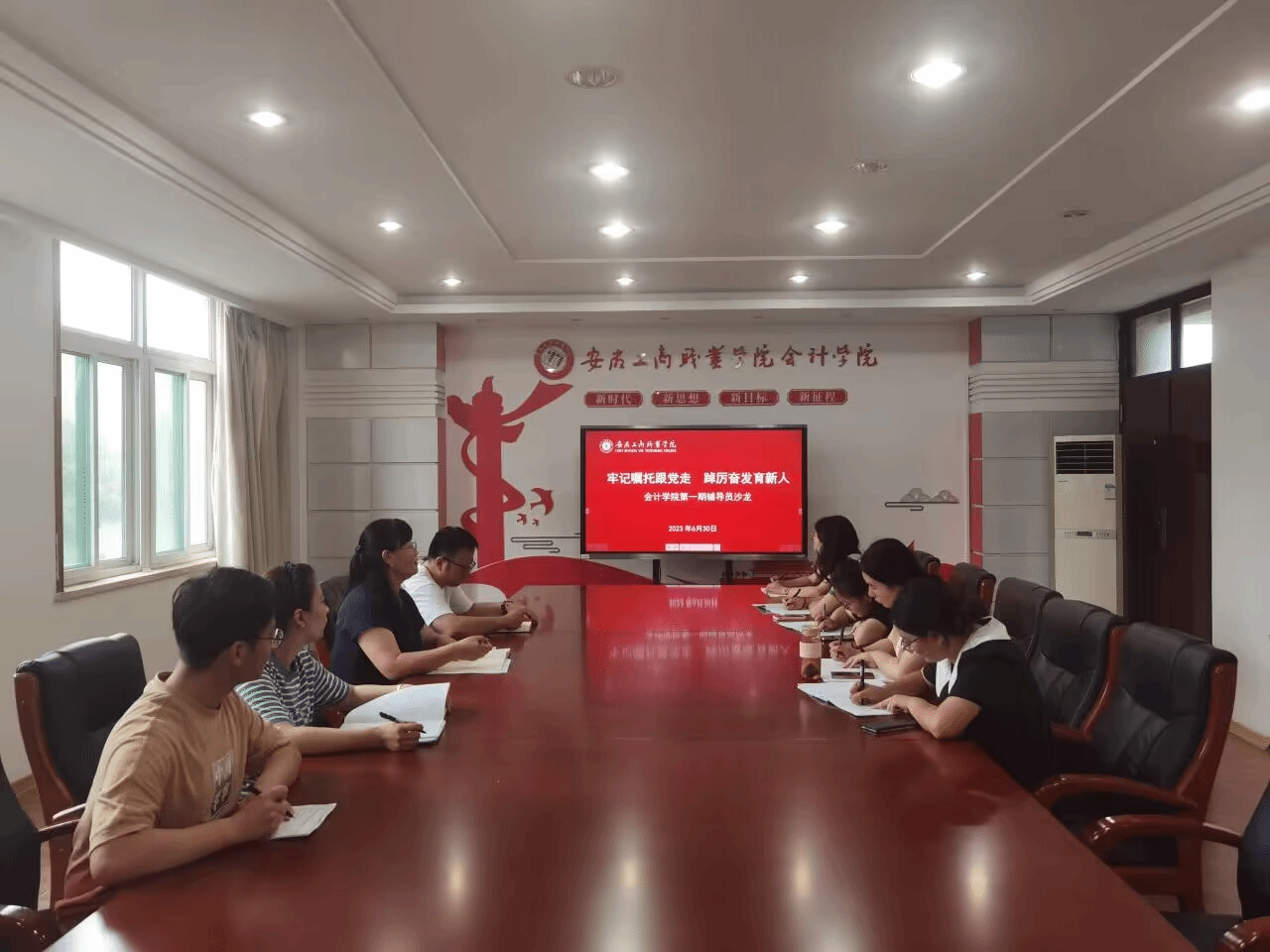 为切实加强会计学院辅导员队伍建设,在中国共产党成立102周年来临之际,6月30日上午,在党建会议室举办了“牢记嘱托跟党走,踔厉奋发育新人”为主题的第一期辅导员沙龙。会计学院党总支书记赵艳,全体专职辅导员参加。