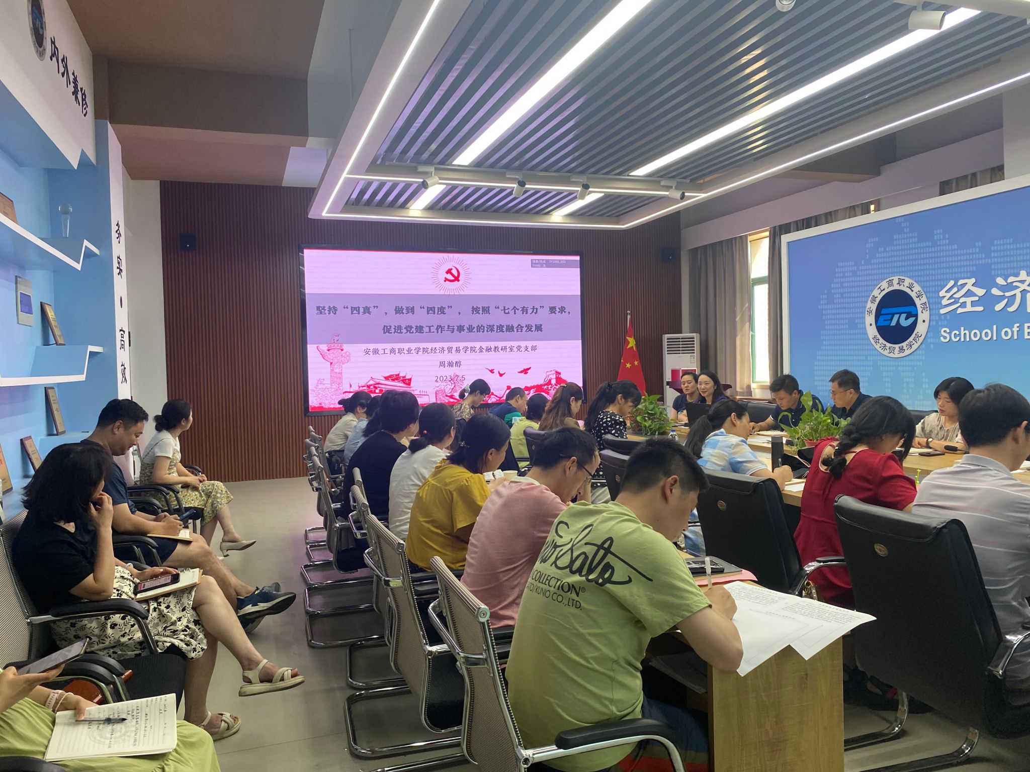 会上,金融教研室党支部书记周瀚醇以《坚持“四真”,做到“四度”, 按照“七个有力”要求,促进党建工作与事业的深度融合发展》为题开展主题教育专题党课。结合金融教研室党支部的发展,按照教育党员、管理党员、监督党员、组织师生、宣传师生、聚焦师生和服务师生的“七个有力”要求,实现注重真学有深度,推进学习型党组织建设;坚持真强有力度,进一步夯实战斗堡垒;聚焦真促有高度,推动党建和业务同频共振;着力真创有温度,进一步丰富党组织活动,增强党组织凝聚力。此次专题党课内容丰富、深入浅出、指导性强,与会人员受益匪浅,表示今后要积极探索党建与事业深度融合发展之路,发挥党建引领作用,以高质量党建助推高质量发展,用事业发展成果检验党建工作成效,实现党建与事业发展双促双赢。