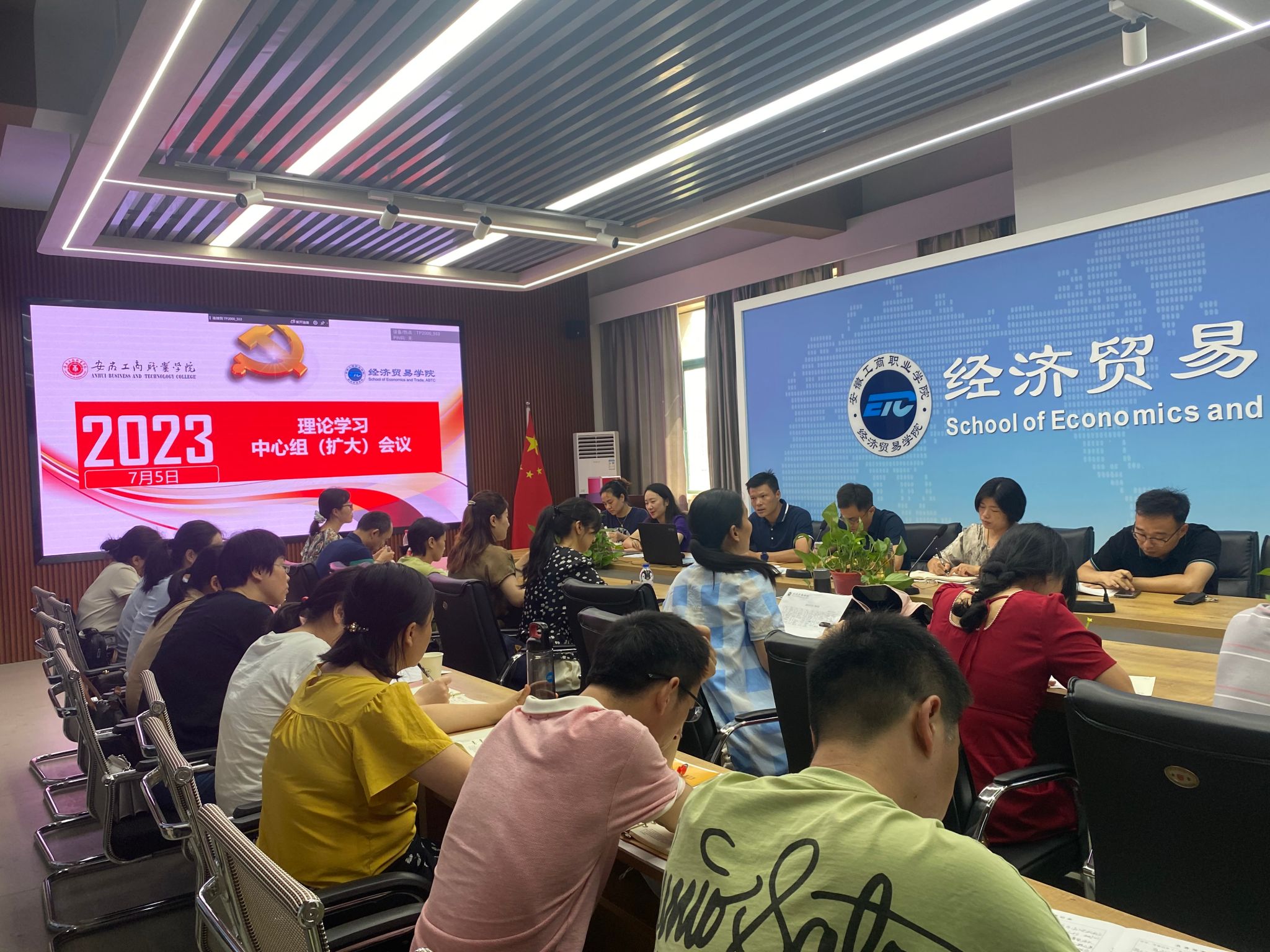 为深入开展学习贯彻习近平新时代中国特色社会主义思想主题教育,7月5日下午,经济贸易学院党总支召开理论学习中心组(扩大)会议,会议由党总支书记边昊主持,全体教职工参加会议。