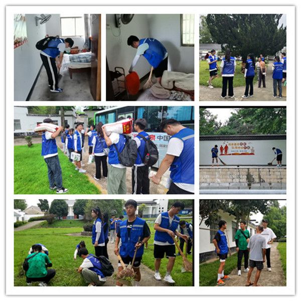 情系敬老院 关怀暖夕阳 安闲自在的庭院,绿色盎然的大树,和蔼可亲的老人……实践团成员们带着米面油等生活物品走进黄村镇敬老院,用行动带去欢笑与关怀。在敬老院负责人的安排下,实践团成员进入行动不便的老人们的房间,打招呼、拉家常,实践团成员们与老人亲切地进行交谈,从饮食起居到身体状况,再到整理打扫房间,同学们忙得不亦乐乎。老人们看到同学们热的满头大汗,激动的握着成员们的手心疼的说道:谢谢你们,谢谢这帮大学生,我们感谢国家和政府,没有他们就没有这么好的日子。老人们真诚的话语、真挚的眼神,深深打动了实践团成员们。随后,在几位爷爷奶奶的带领下,参观了每一个房间。“这是我们看电视的地方,还有空调嘞,不过就是位置太少了”“你们看,这是我们睡的地方,每个房间安排的两个人一起住”“这是吃饭的地方”,一路上老人们像讲解员一样,用方言兴奋地向实践团成员介绍着院里的每一个角落。