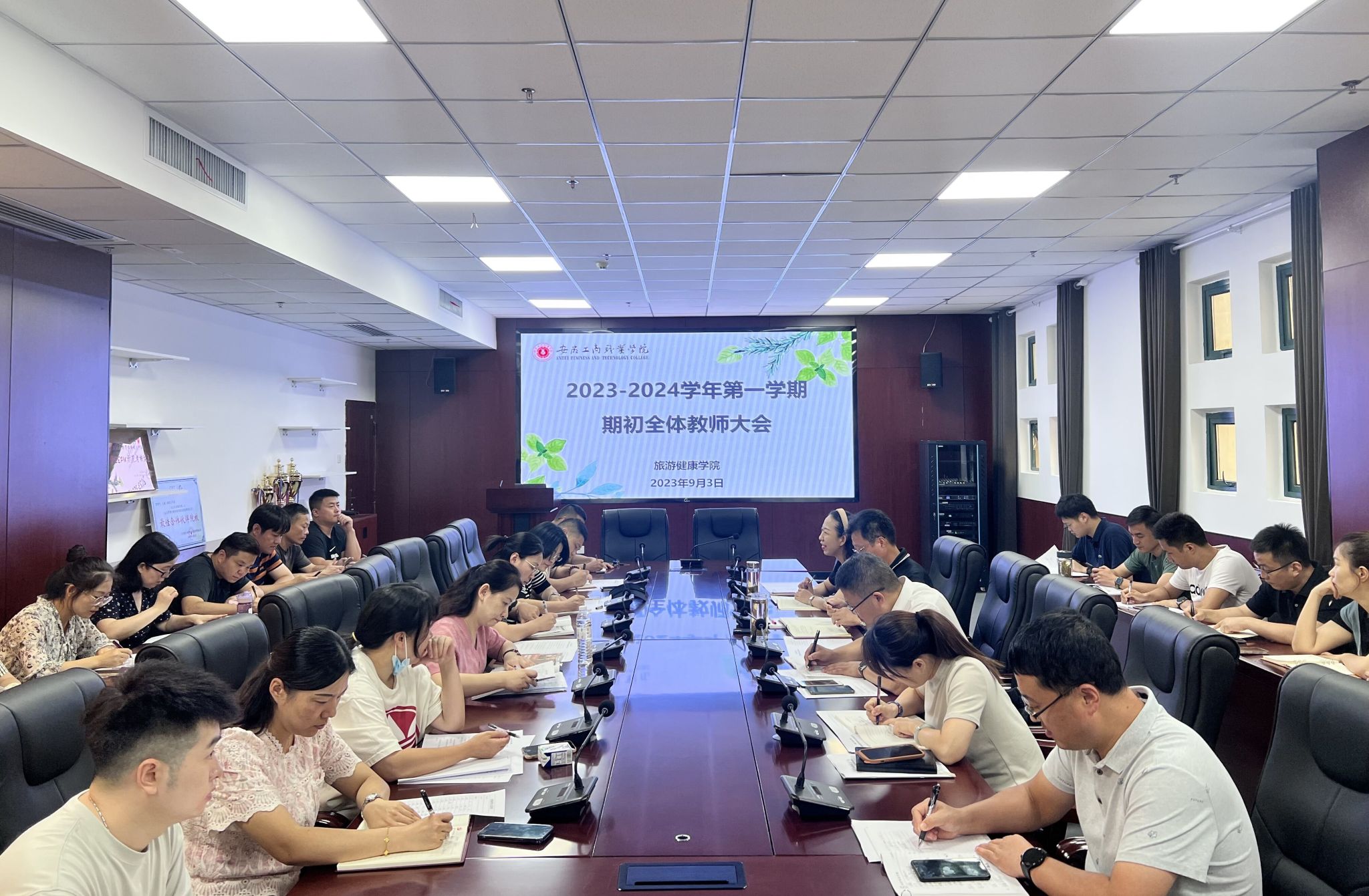 为保障新学期各项工作有序开展, 9月3日中午,旅游健康学院召开全体教职工期初工作会议,学院全体教职工参加会议。会议由旅游健康学院院长傅绪明主持。