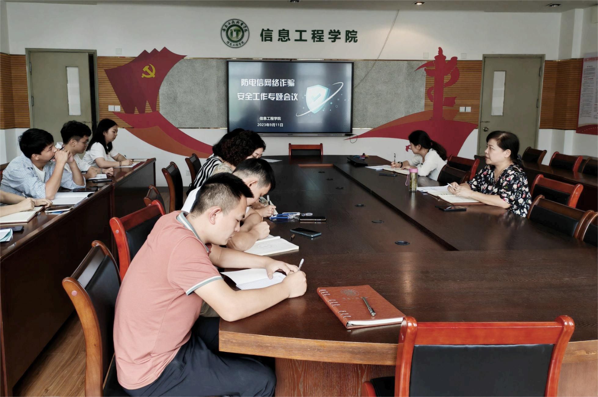 为进一步加强防诈工作宣传力度,筑牢学生反诈防骗安全意识,9月11日下午,信息工程学院在307会议室召开反诈防骗工作专题会议,学院全体辅导员参会,会议由信息工程学院党总支书记张静雯主持。