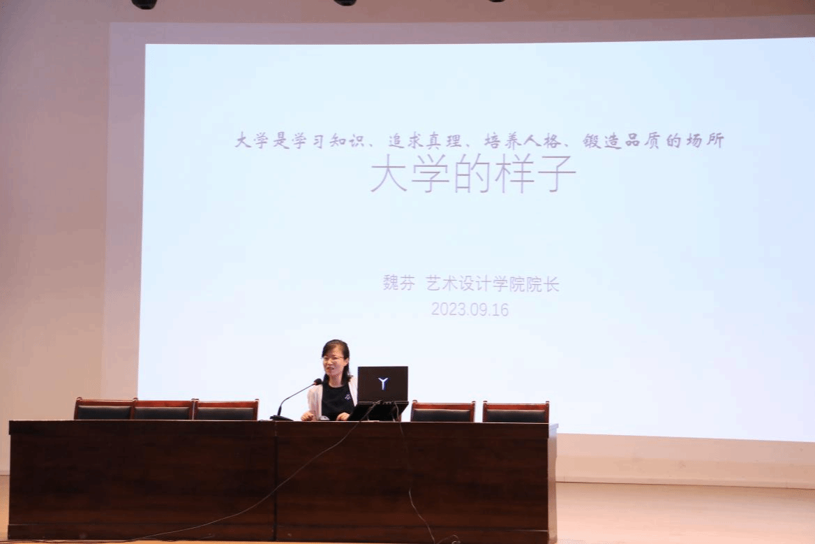 9月16日上午,产品教研室主任赵中华、广告教研室主任范韬、环艺教研室专业教师许振中分别就我院现有专业做了介绍,以及专业对应就业岗位和社会发展对职业人才培养的需求;教务科先后组织工作室开放日让2023级新生参观了学院合瓦?VISION艺术馆、各专业工作室、实训室;当天下午艺术设计学院院长魏芬发表了以《大学的样子》为主题的演讲,她语重心长又用诙谐幽默的语言向同学们介绍了如何快速转变角色做一位当代合格的大学生;对新同学寄予了期望和更高的要求。艺术设计学院优秀学生代表马桂悦分享了自己的学习及创业成长历程。