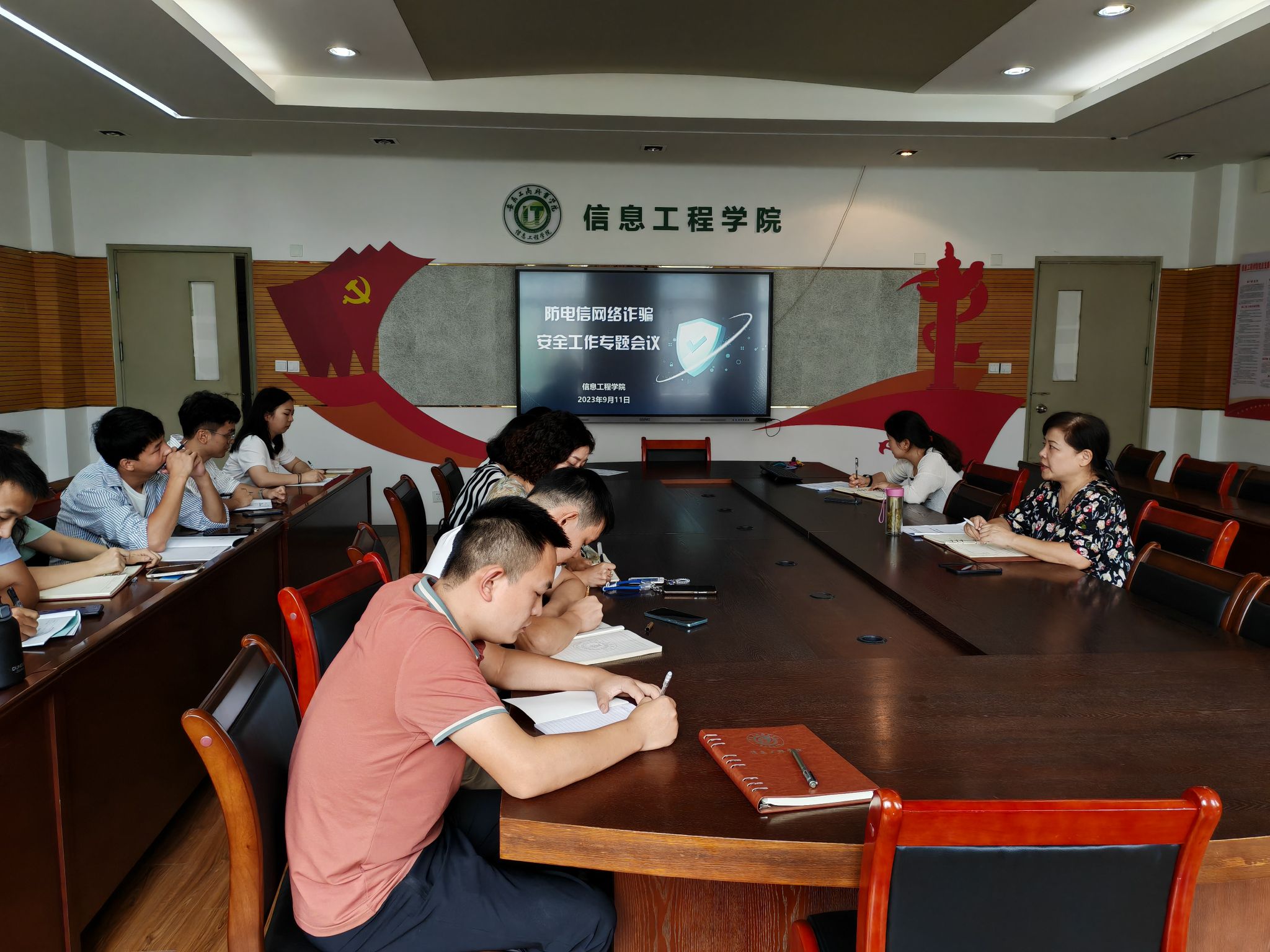 自开学以来,信息工程学院多次召开学生管理工作会议,党政领导亲自部署反诈防骗教育宣传工作,结合学校已发案件定期召开分析会、讨论会,部署会,明确要求全体老师和辅导员要结合常见的诈骗案件多措并举开展反诈防骗宣传和教育活动,以案说法,扎实推进反诈防骗宣传走深走实,引导学生正确使用网络,加强自我防骗意识,明辨各种电诈骗局,守护自身财产安全。