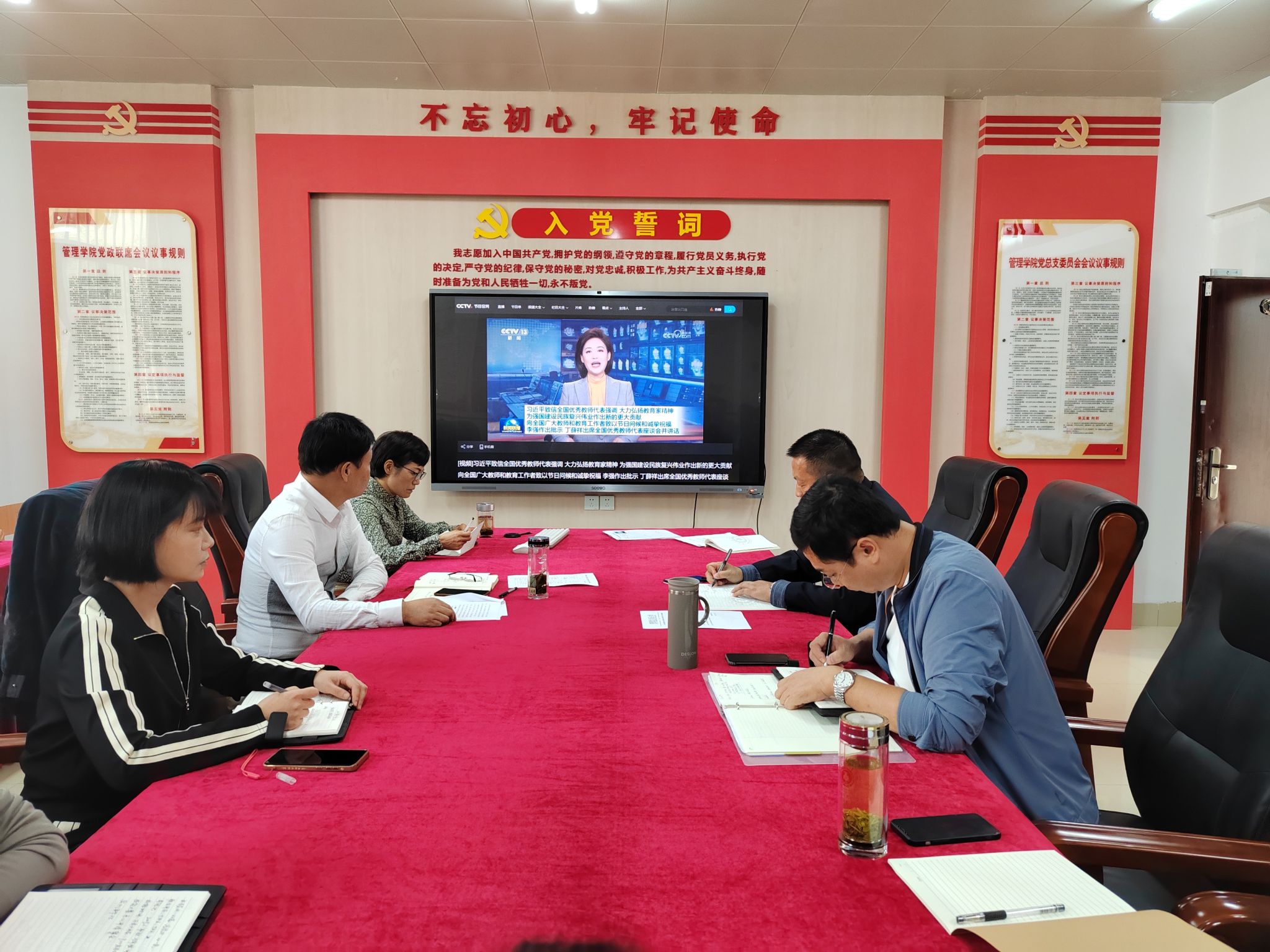 10月11日中午,管理学院在108会议室召开教职工政治理论学习会议,认真学习习近平总书记致信全国优秀教师代表重要指示精神 、习近平总书记在二十届中共中央政治局第八次集体学习上的重要讲话精神等,传达学习《中共安徽工商职业学院委员会世界第一大赌场,澳门金沙城中心全面推进党建与事业发展深度融合的实施意见》文件精神,部署安排学院近期教学及学生管理工作。学院党总支书记曹大友、全体教师参会,学院党总支副书记汪锋主持会议。