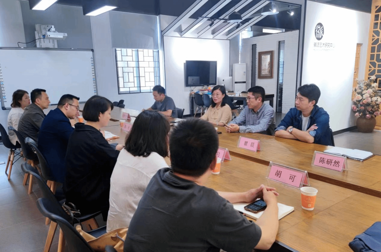 10月19日下午,安徽广播影视职业技术学院艺术设计学院施俊院长一行6人来艺术设计学院考察交流。艺术设计学院院长魏芬、党总支副书记张乐在致知楼2 楼徽派艺术研究中心进行了热情接待。教务科负责人瞿晨、产品教研室主任赵中华及徽派技艺传承与创新库(非遗)项目工作小组等参加接待。