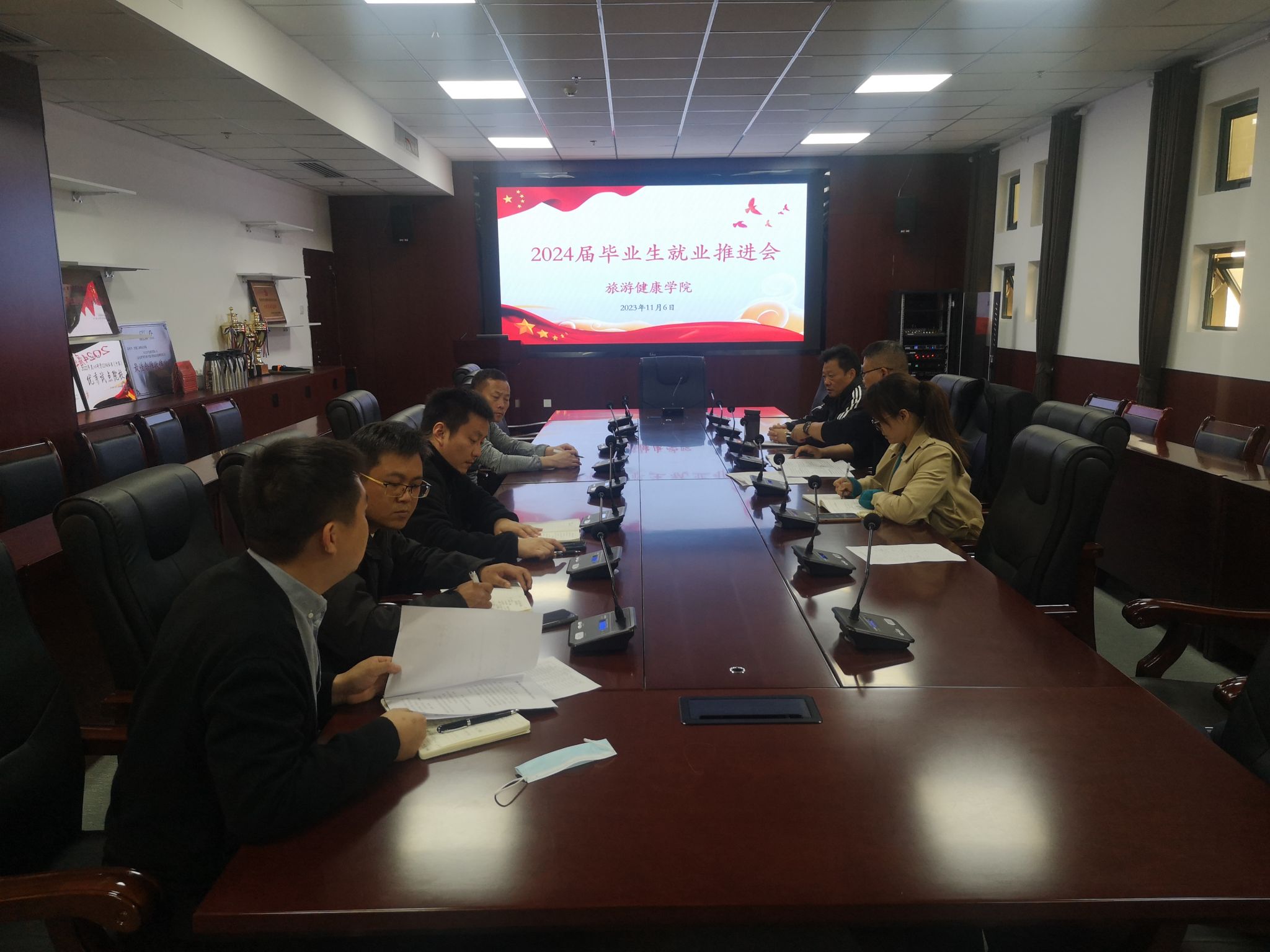 为了做好2024届毕业生就业工作, 11月6日中午,旅游健康学院召开毕业班辅导员会暨2024届毕业生就业工作推进会。学院院长傅绪明、党总支副书记刘燕和全体毕业班辅导员参加了会议,会议由党总支书记杨锐主持。