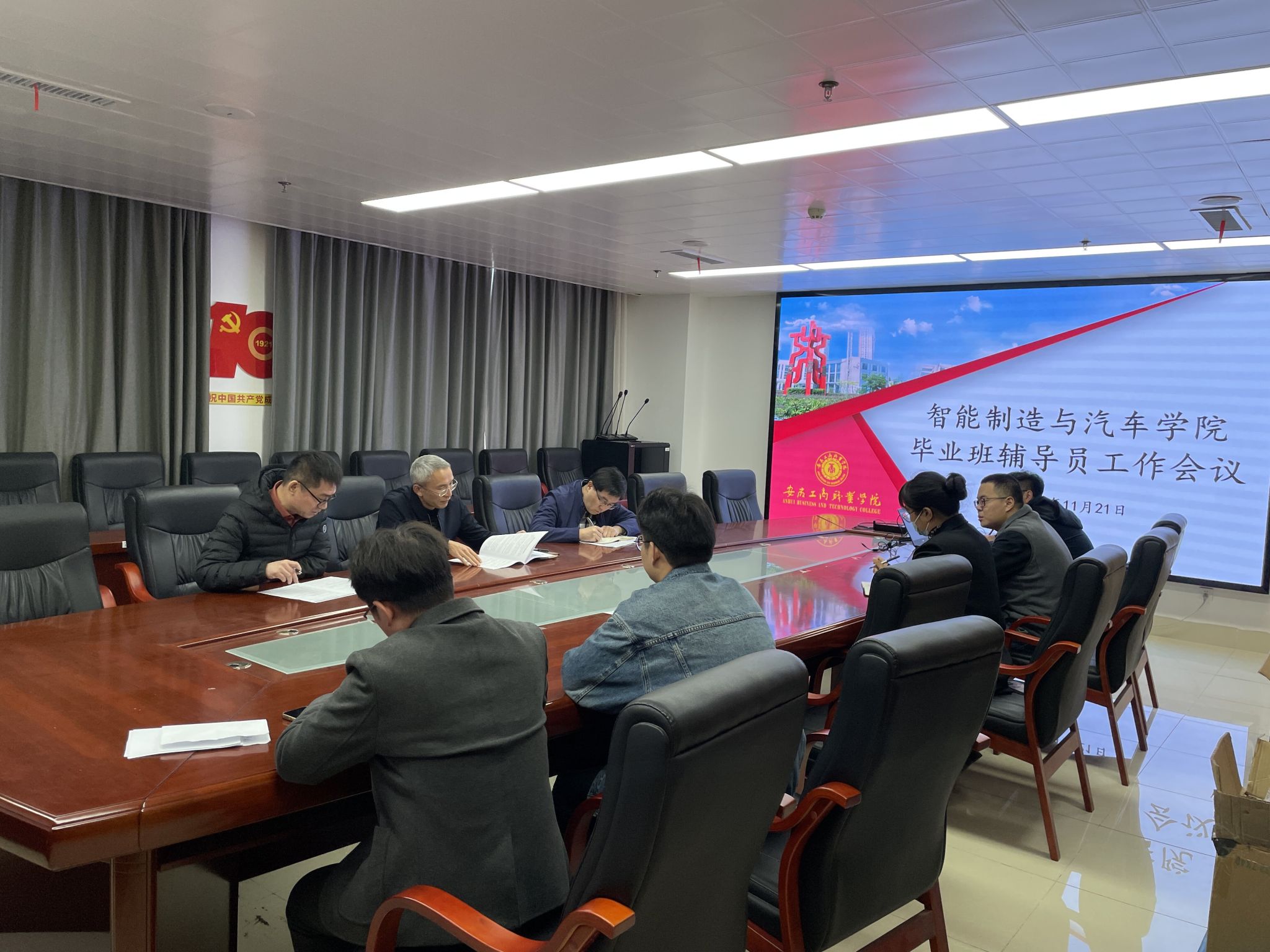 11月21日上午,智能制造与汽车学院在综合楼第六会议室召开2024届毕业生工作会议。学院全体毕业班辅导员参会,会议由党总支书记丁浩主持。