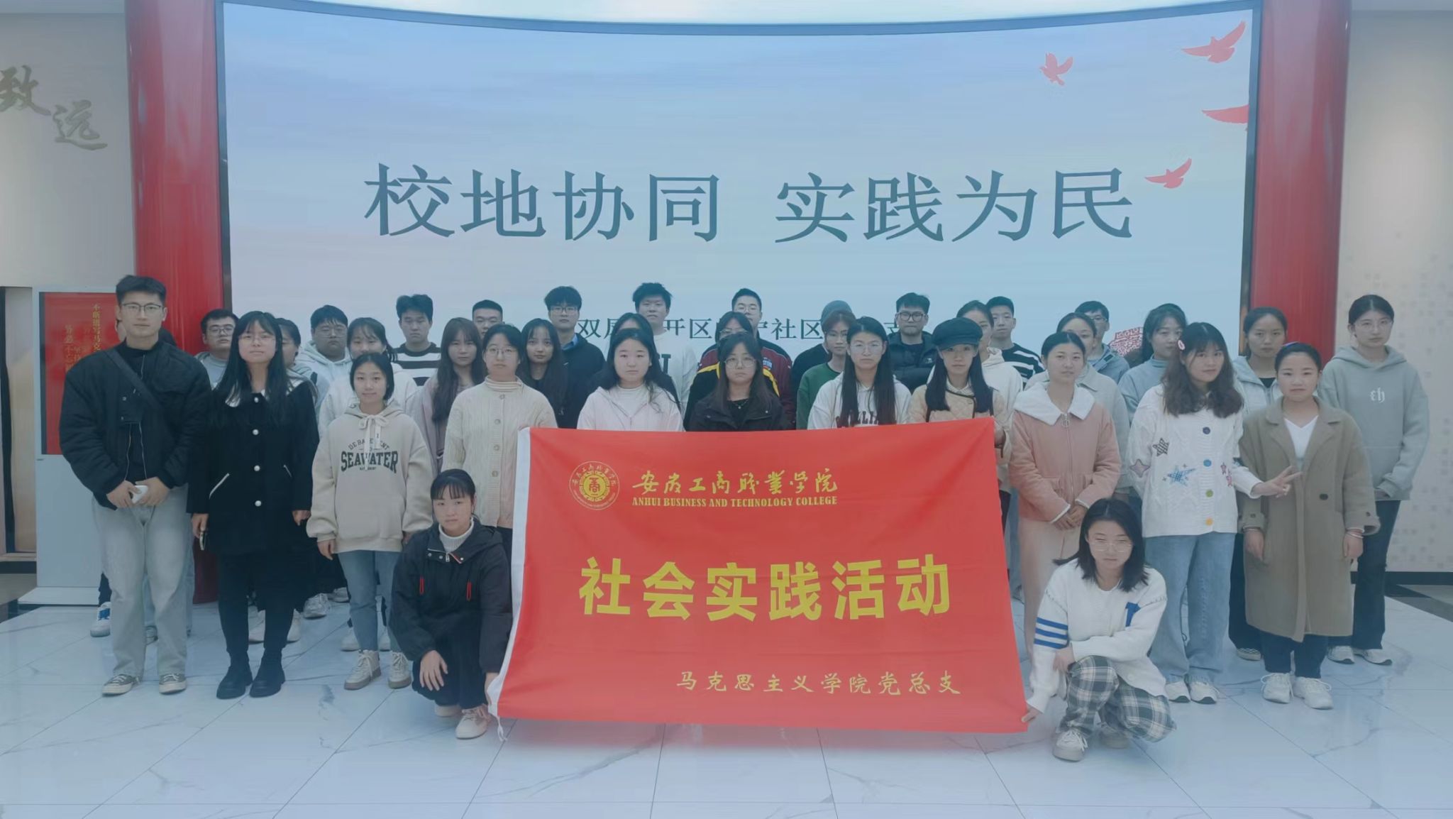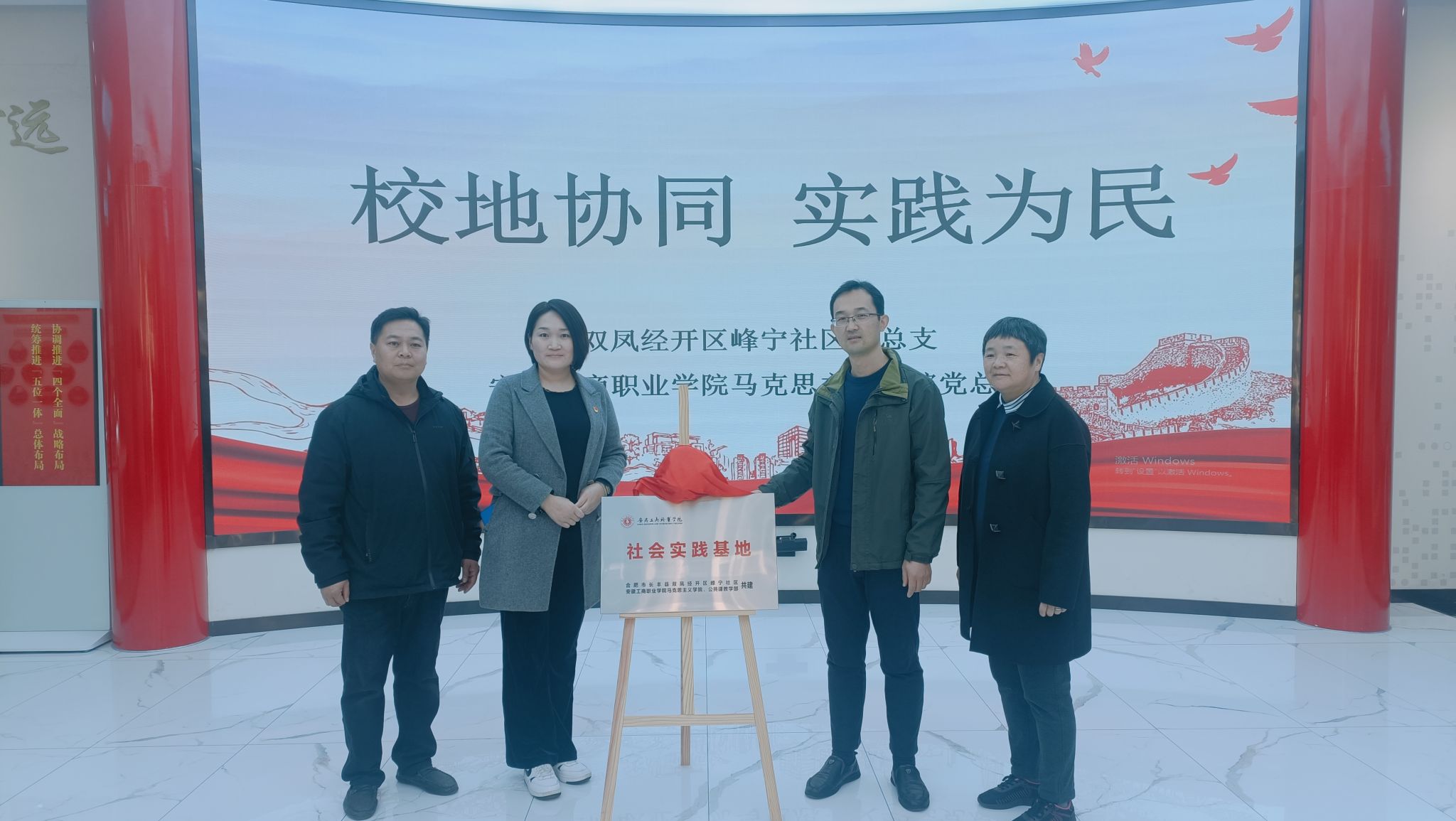为持续拓展思政育人新渠道,不断提升实践育人新成效。2023年11月21日,马院党总支赴双凤经开区峰宁社区党群服务中心开展校地共建活动。马院党总支书记、院长葛成飞、峰宁社区党总支书记张爱华代表校地双方为社会实践基地揭牌,马院党总支班子成员杨忠慧、蒋强军出席揭牌仪式,总支部分党员、2022物流管理联培1班学生及社区工作者共同开展了主题研学。