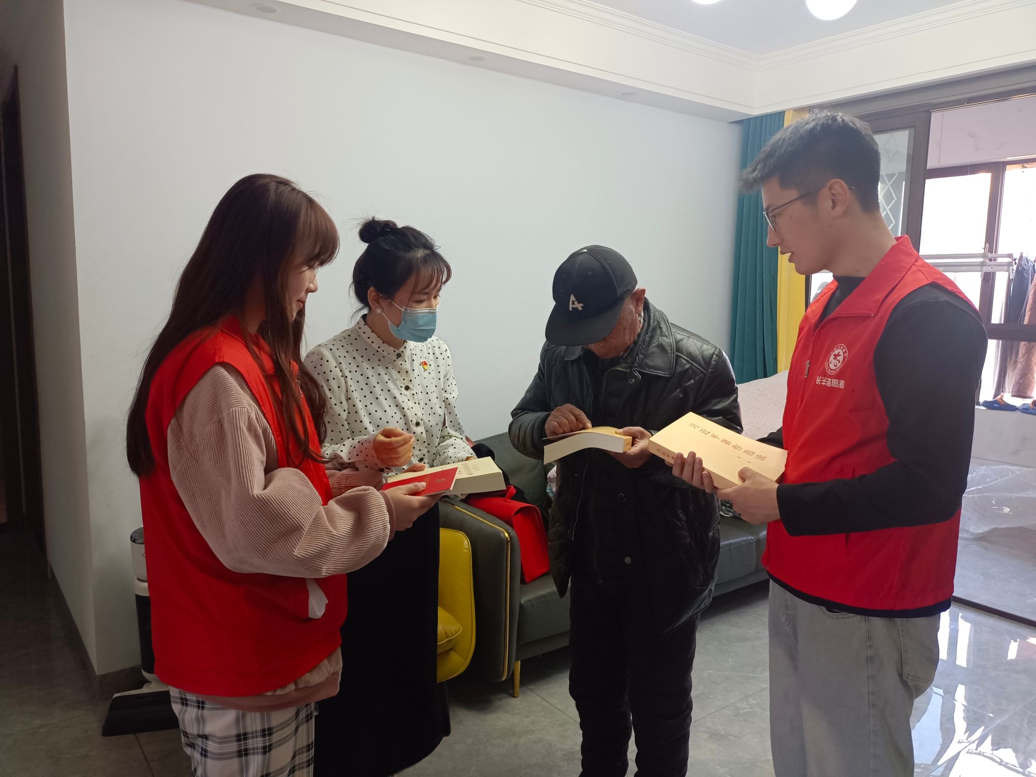 在主题研学环节,联培1班全体学生在社区工作者的带领下,走进弘扬时光里社区,了解了时光里小区的物业管理、社情民意。部分学生代表还深入普通居民生活中,送书上门,送学入户,体验了社区工作者的日常工作,深化了对共建共治共享的基层社区治理新格局、新风尚的认知。