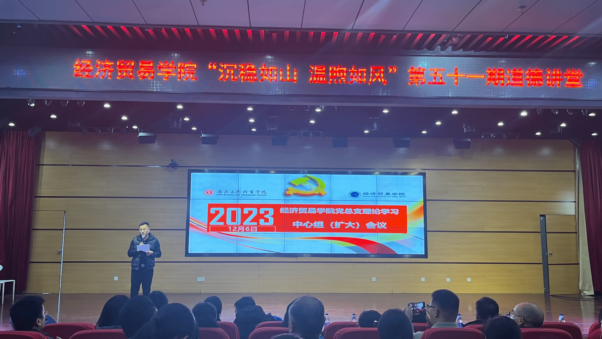 12月6日下午,经济贸易学院党总支在学术报告厅召开理论学习中心组(扩大)学习会议,会议由党总支书记边昊主持,全体教职工参加会议。