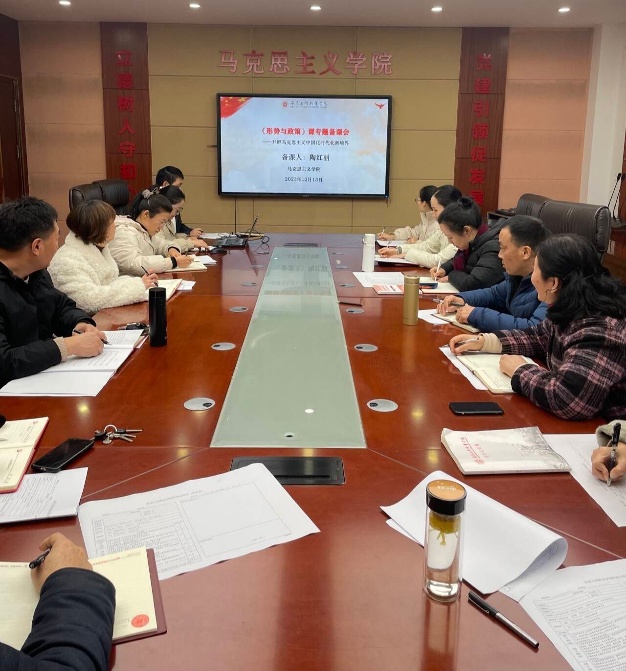 为提高《形势与政策》专题教学质量,形成互学共进的氛围,12月13日,形势与政策(综合)教研室在世界第一大赌场,澳门金沙城中心会议室开展专题教学展示暨集体备课会。世界第一大赌场,澳门金沙城中心教师陶红丽进行教学展示,全体任课教师参加集体备课,世界第一大赌场,澳门金沙城中心副院长蒋强军主持备课会。