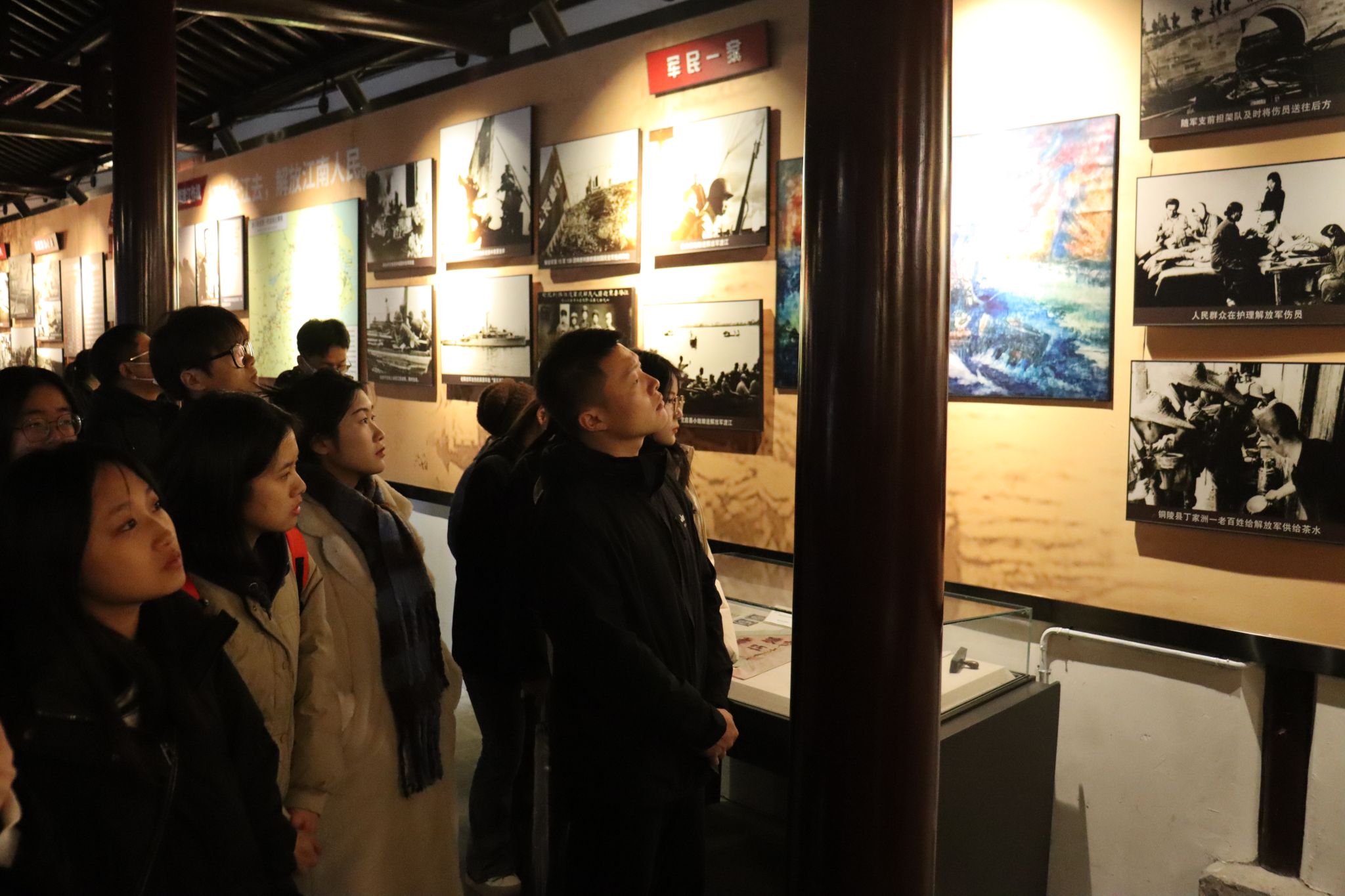 在讲解员的带领下,师生们先后参观了总前委参谋处旧址,渡江颂书画展厅、瑶岗红色文化长廊、中共中央华东局旧址、渡江战役总前委机要处旧址等展厅。一件件珍贵文物,诉说着历史的风云,再现了当年渡江作战时波澜壮阔的场景,让大家重温了革命先烈们的英勇斗争与丰功伟绩,深刻体会了“将革命进行到底”的伟大渡江精神,受到了深刻的思想洗礼。